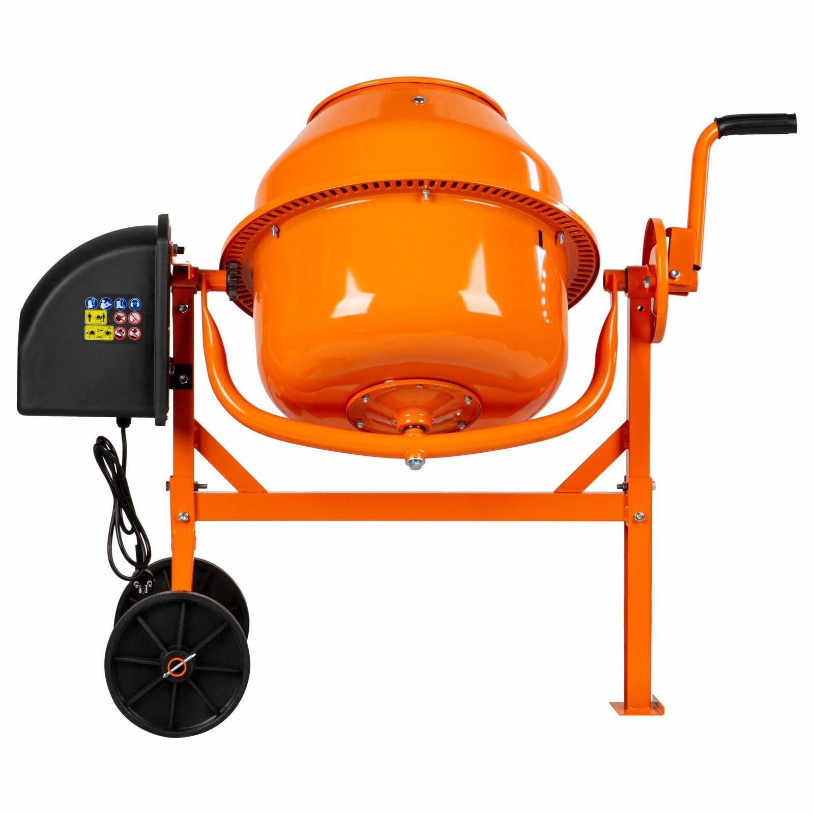 - Опорная ножка обеспечивает устойчивость бетоносмесителя на рабочей площадке, а колеса диаметром 20.5 мм делают простым его перемещение.