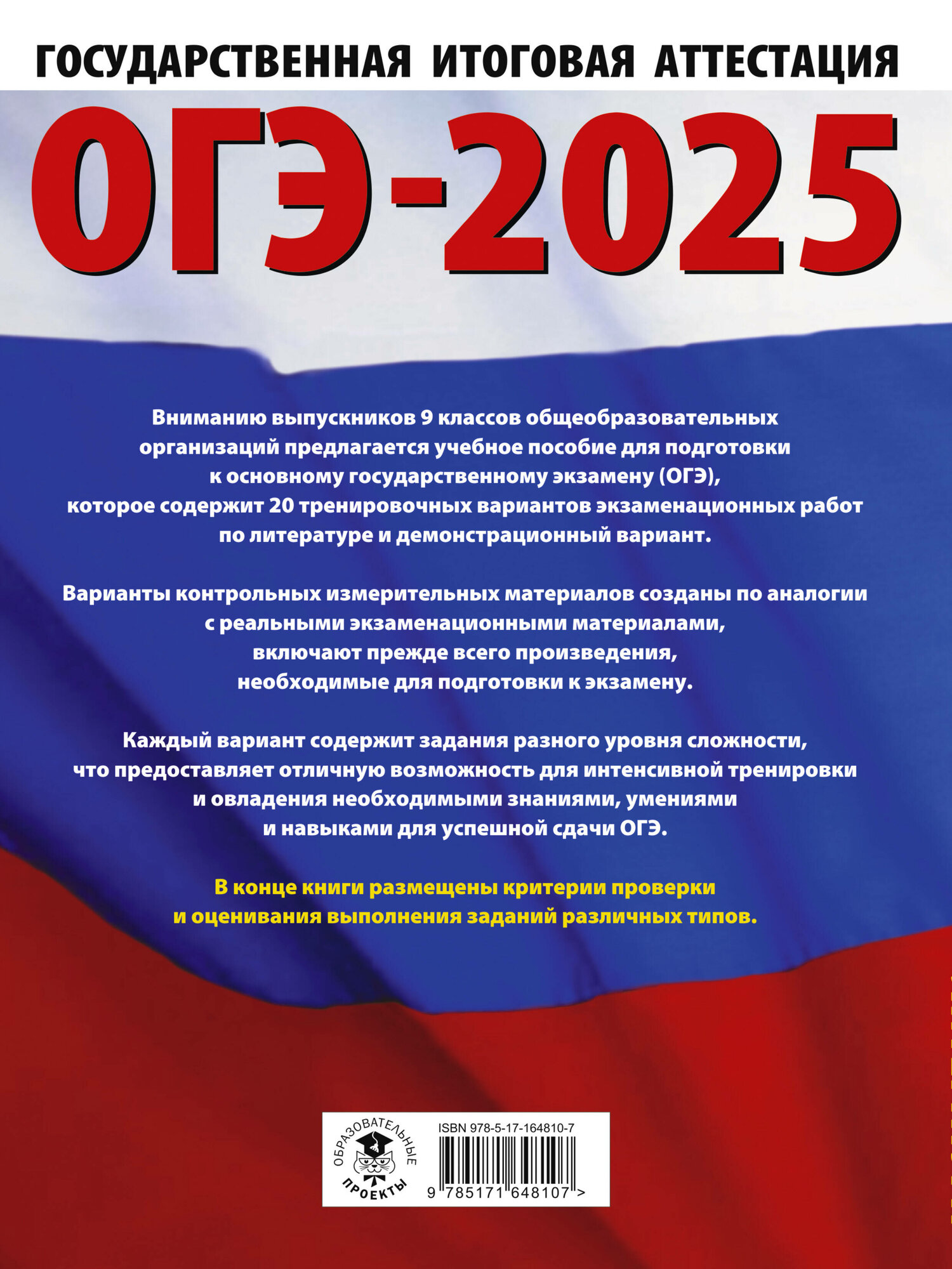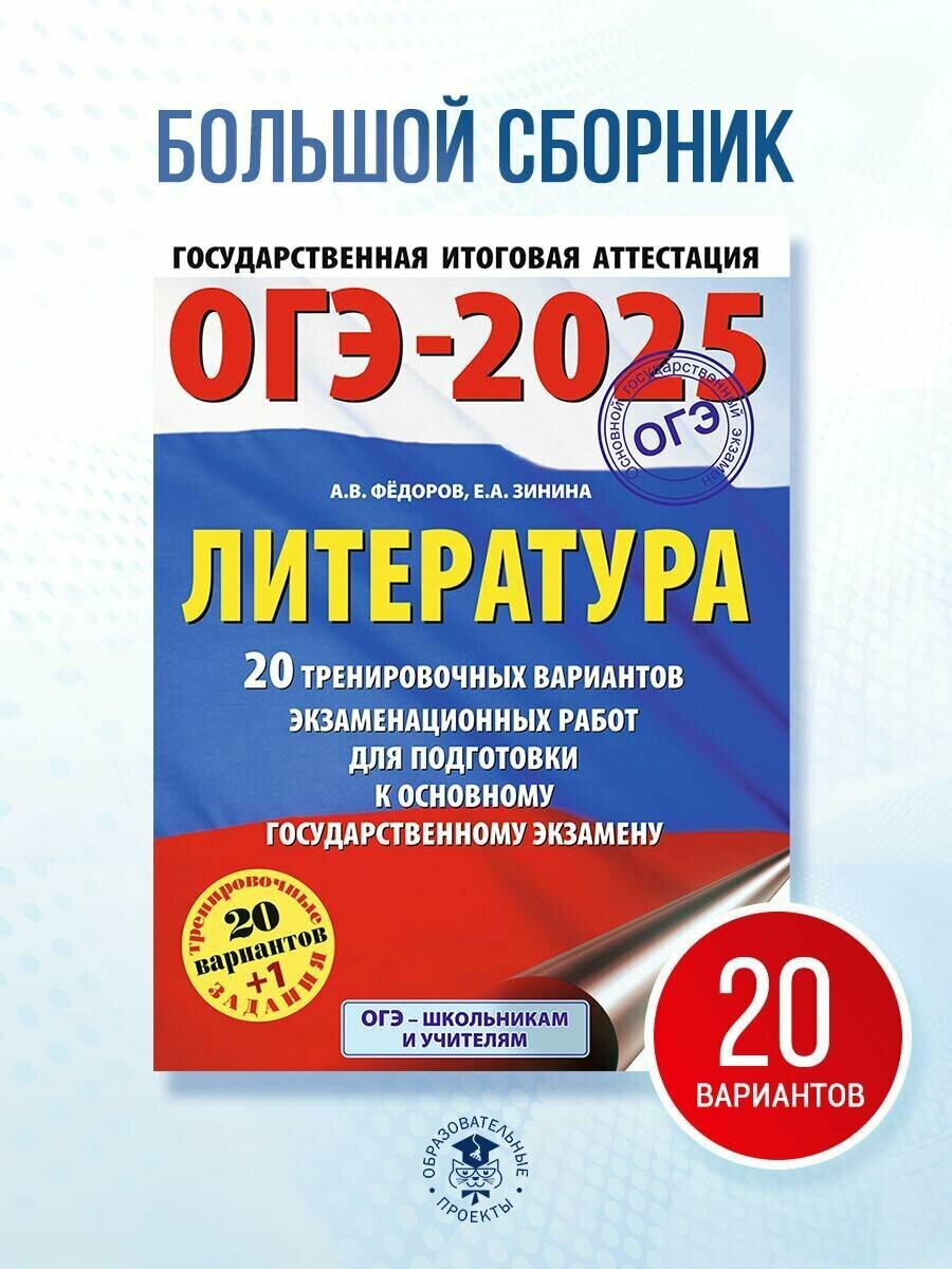 ОГЭ-2025. Литература. 20 тренировочных вариантов экзаменационных работ для подготовки к основному государственному экзамену (Зинина Елена Андреевна, Федоров Алексей Владимирович); ООО "Издательство Астрель", 2024