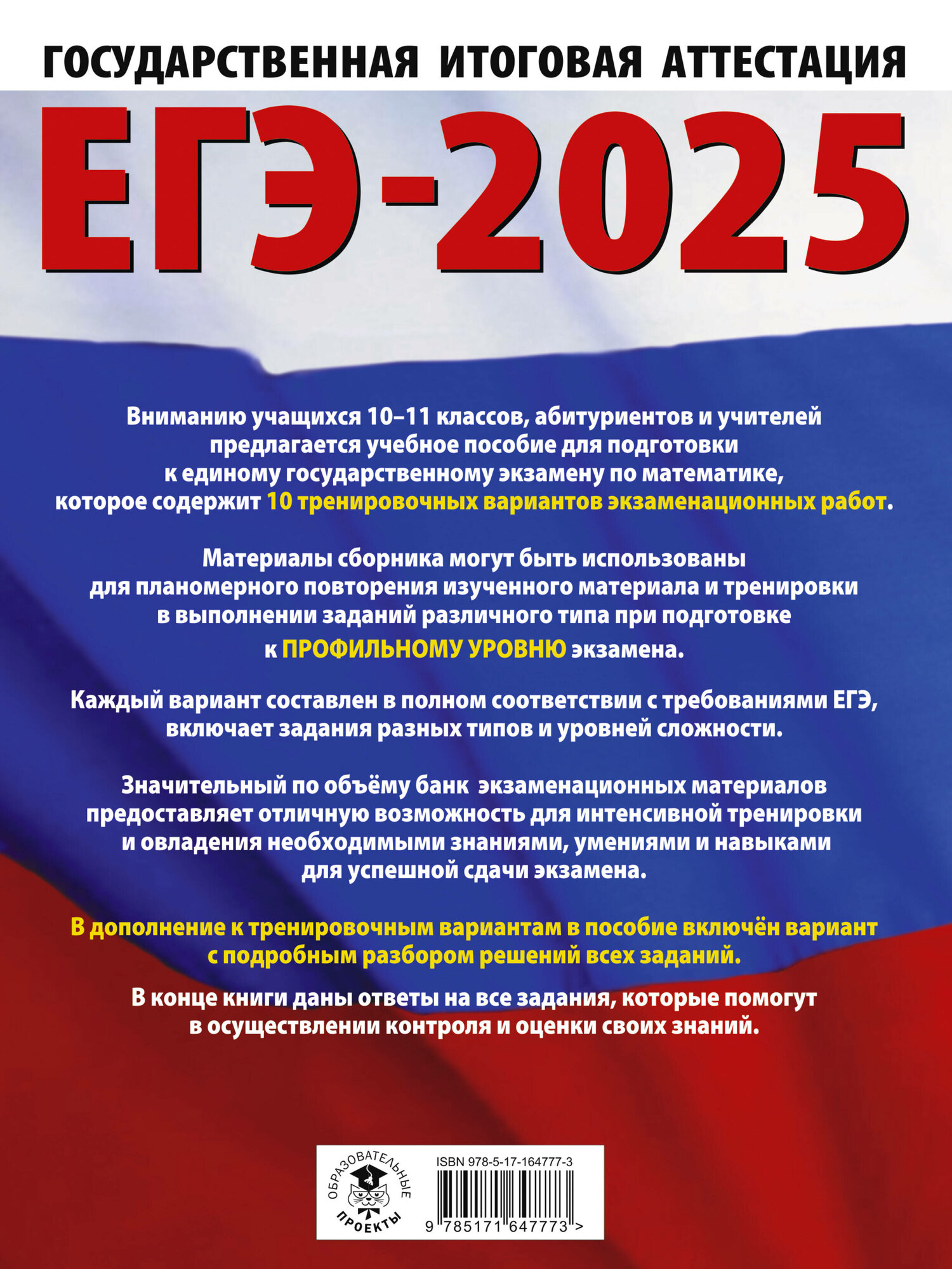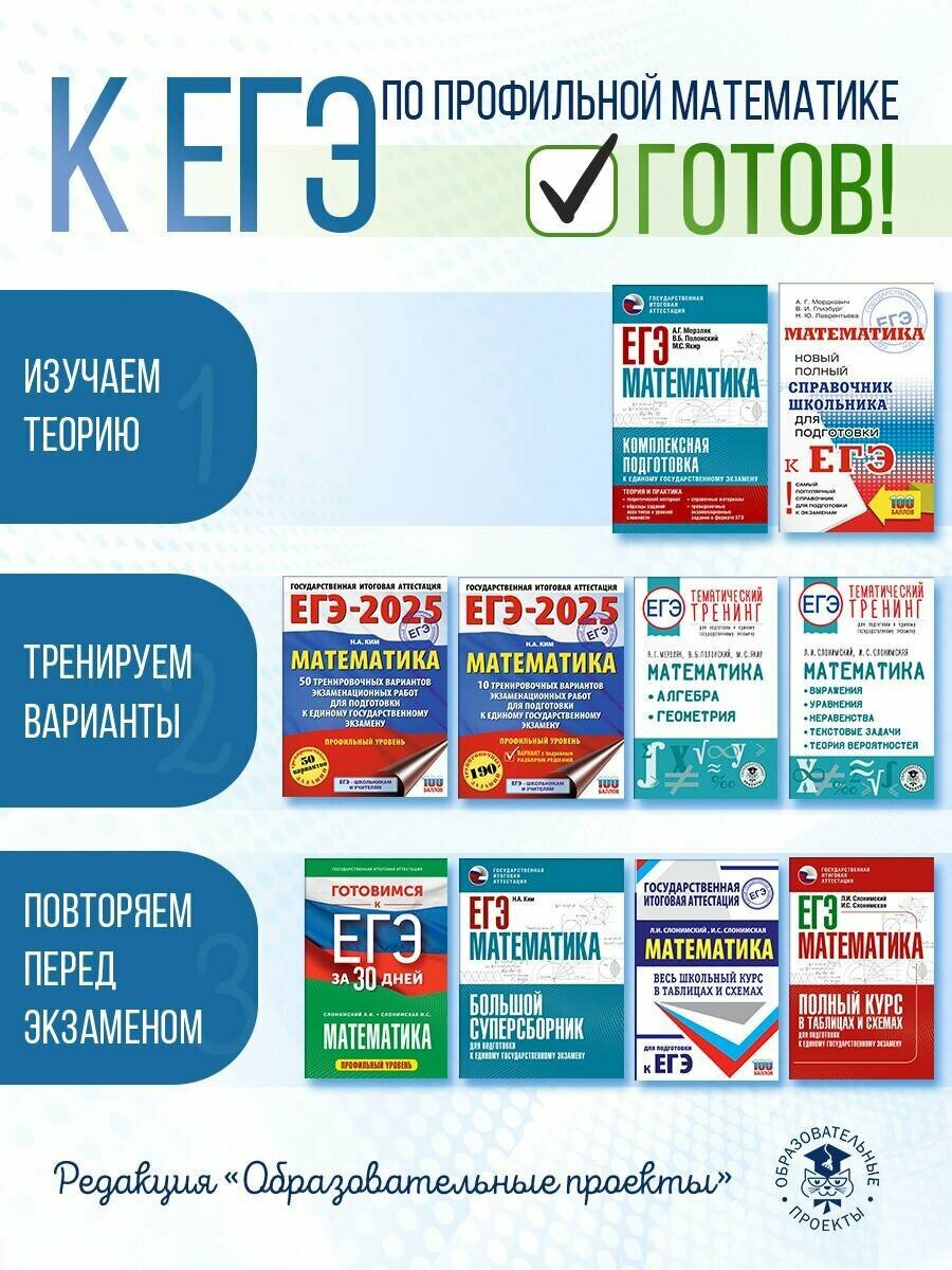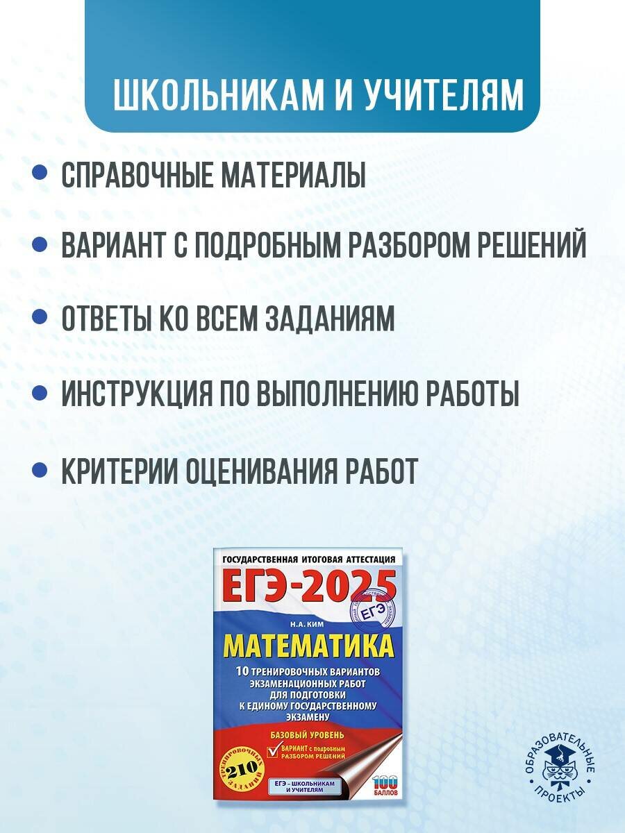 ЕГЭ-2025. Математика. 10 тренировочных вариантов экзаменационных работ для подготовки к единому государственному экзамену. Профильный уровень (Наталья Анатольевна Ким); Образовательные проекты, 2024