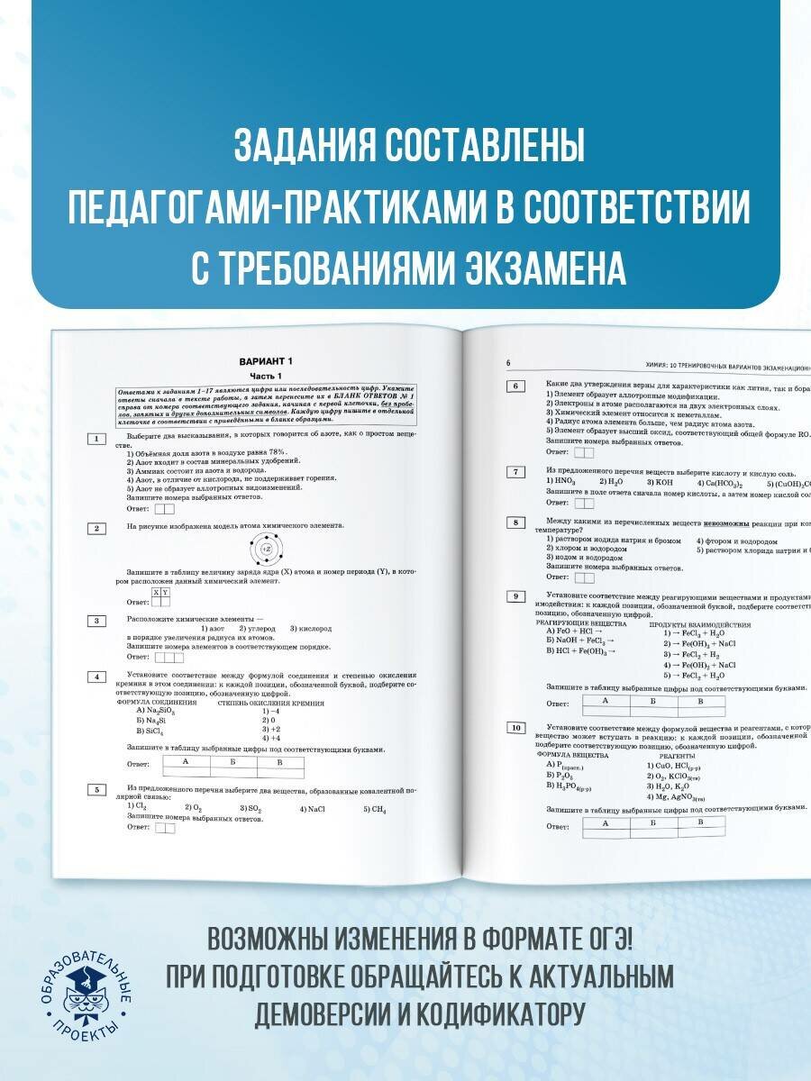 Сборник содержит 10 тренировочных вариантов экзаменационных работ по химии и предназначен для подготовки к основному государственному экзамену в 9 классе.