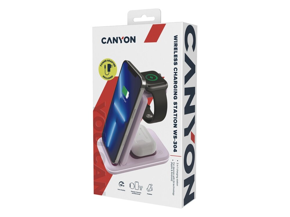 Беспроводное зарядное устройство 3 в 1 Canyon WS-304 с поддержкой Qi до 15Вт Розовый CNS-WCS304IP