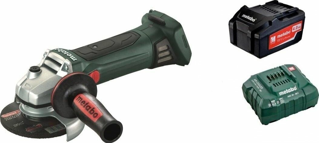 | Комплектация | Защитный кожух Опорный фланец Гайка с двумя торцевыми отверстиями Дополнительная рукоятка Ключи с двумя отверстиями 2 аккумуляторных блока Li-Power (18 В / 4,0 А*ч) Зарядное устройство ASC 55 "AIR COOLED" metaBOX 165 L |