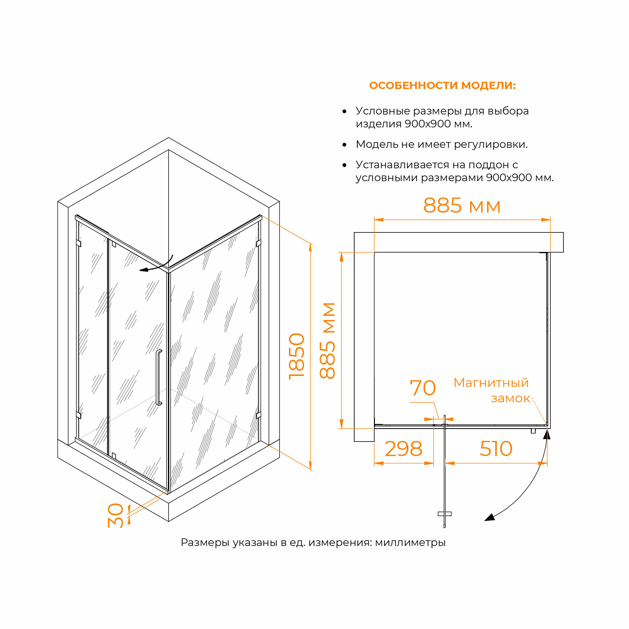 - Размеры (ШхВхД): 885х1850х885 мм.