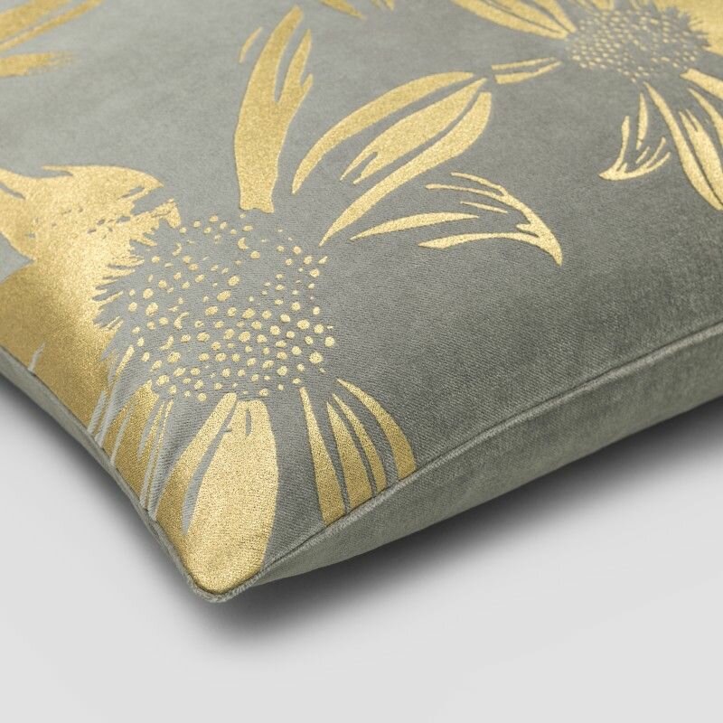 Бархатная декоративная подушка «Флорми» изготовлена из натурального 100% хлопка. Хлопковый бархат с матовым ворсом на лицевой стороне мягкий и приятный на ощупь.Ткань подушки «дышит» и не накапливает статическое электричество. Внутри искусственный лебяжий пух, высококачественное микроволокно, мягкое, нежное и одновременно упругое. Подушка не деформируется, так как наполнитель эластичен и быстро восстанавливает свою форму после сжатия.Яркий флоральный орнамент «Флорми» – золотистые контуры крупных садовых цветов. Эти красивые мерцающие лепестки, созданные с помощью тиснения фольгой, эффектно выделяются на фоне ткани благородного серого цвета. Такие нарядные подушки дополнят современные интерьеры, оформленные в актуальной сейчас серо-бежевой палитре.