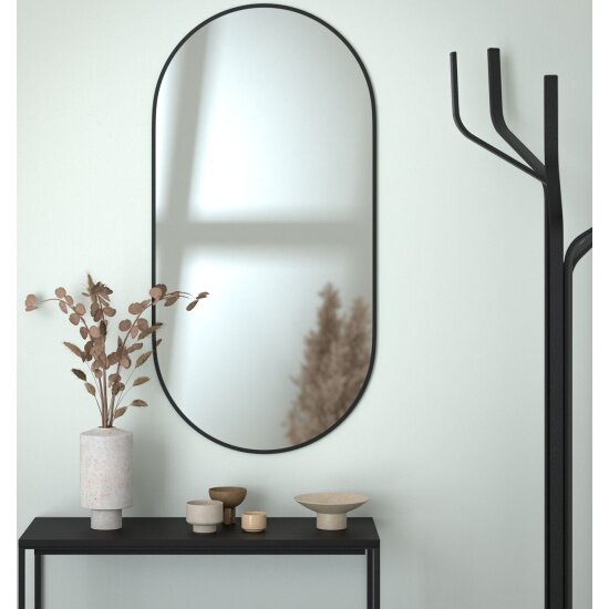Размер зеркала составляет 60 x 120 сантиметров, что делает его идеальным для использования в ванной комнате, прихожей или спальне, а черная окантовка шириной 10 мм придает зеркалу стильный и современный вид.