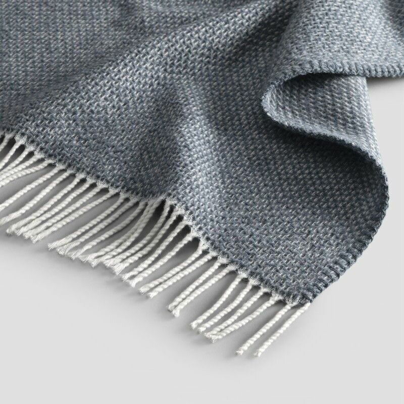 Легкий плед «Моррикон» изготовлен из комбинированной ткани – в нем высококачественный хлопок сочетается с шелковистым модалом.Хлопковые пледы гигиеничны: гигроскопичны, прекрасно пропускают воздух, не накапливают статическое электричество. Добавление шелковистого модала в ткань делает ее более нежной на ощупь. «Моррикон» – легкая модель, такой плед, наброшенный на плечи, позволяет телу дышать, под ним не жарко.Легкий однотонный плед привлекает внимание выразительной жаккардовой фактурой ткани и приятным сине-серым оттенком. Края плед оформлены контрастной белой бахромой. Эта модель станет прекрасным подарком для мужчины.
