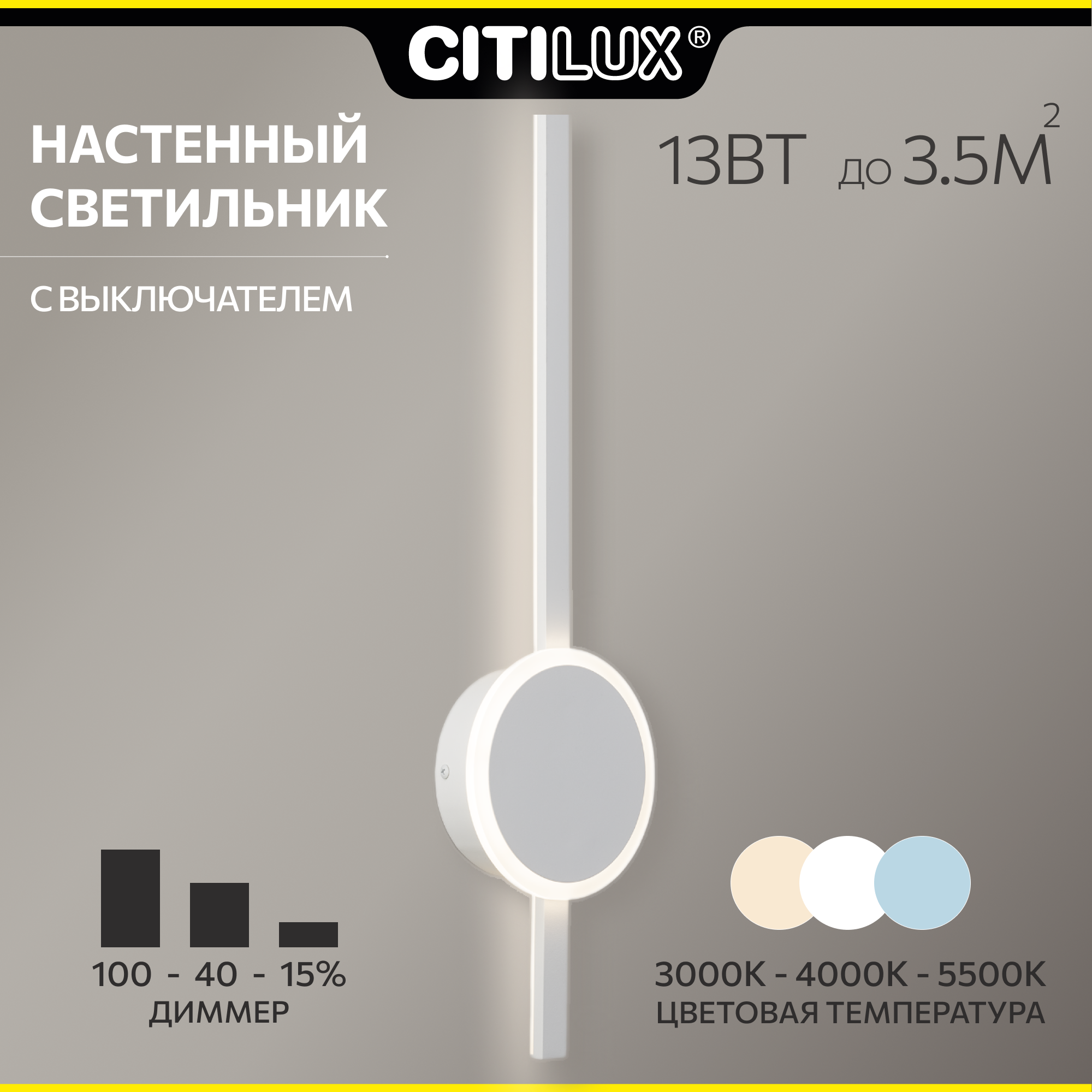 Оригинальный настенный светильник Citilux Стиг восхищает своим стильным дизайном, созданным в современной эстетике. Элегантный металлический корпус с круглым основанием и белым матовым покрытием в сочетании с рассеивателем из оптического полимера придает ему особую привлекательность. Высота изделия 46,5см, ширина 13,5см, глубина 5,5см, мощность 13Вт. Светильник оборудован уникальными функциями, включая встроенный ступенчатый диммер (100-40-15%) и переключатель цветовой температуры (3000-4000-5500 К), позволяющий выбрать теплый, нейтральный или холодный свет, безопасный для глаз, без мерцания и пульсаций. Актуальное сочетание минимализма и хай-тека делает модель Ситилюкс Стиг потрясающим элементом современного интерьера. Его можно установить на стене как вертикально, так и горизонтально, что расширяет возможности использования в различных помещениях. Светильник станет незаменимым источником света, а также важной деталью дизайна для гостиной, спальни, кухни, прихожей и кабинета. Он прекрасно подчеркнет строгий стиль современных кафе и ресторанов, добавляя изысканности и шарма.