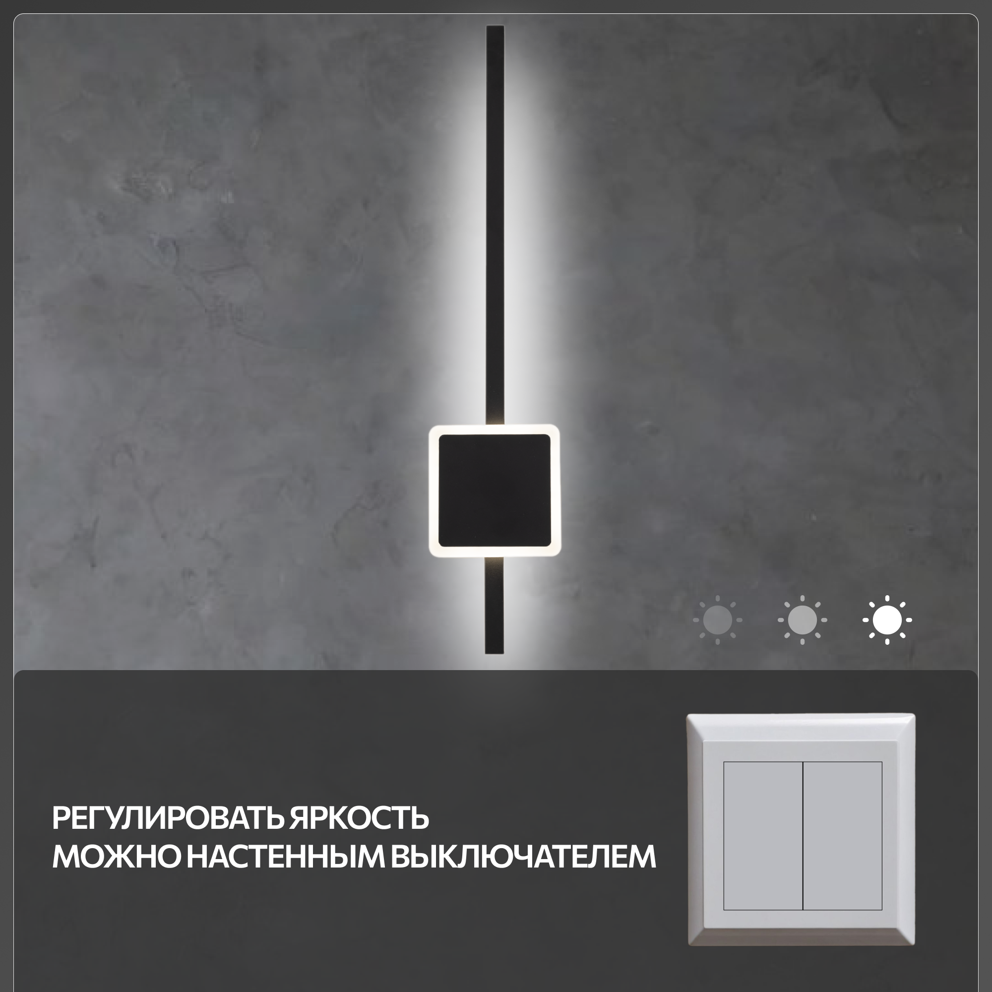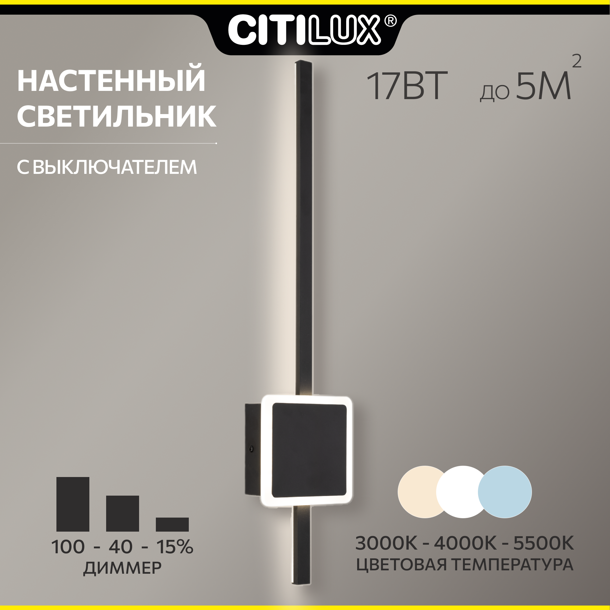 Оригинальный настенный светильник Citilux Стиг восхищает своим стильным дизайном, созданным в современной эстетике. Элегантный металлический корпус с квадратным основанием и чёрным матовым покрытием в сочетании с рассеивателем из оптического полимера придает ему особую привлекательность. Высота изделия 61,5см, ширина 12,5см, глубина 5,5см, мощность 17Вт. Светильник оборудован уникальными функциями, включая встроенный ступенчатый диммер (100-40-15%) и переключатель цветовой температуры (3000-4000-5500 К), позволяющий выбрать теплый, нейтральный или холодный свет, безопасный для глаз, без мерцания и пульсаций. Актуальное сочетание минимализма и хай-тека делает модель Ситилюкс Стиг потрясающим элементом современного интерьера. Его можно установить на стене как вертикально, так и горизонтально, что расширяет возможности использования в различных помещениях. Светильник станет незаменимым источником света, а также важной деталью дизайна для гостиной, спальни, кухни, прихожей и кабинета. Он прекрасно подчеркнет строгий стиль современных кафе и ресторанов, добавляя изысканности и шарма.