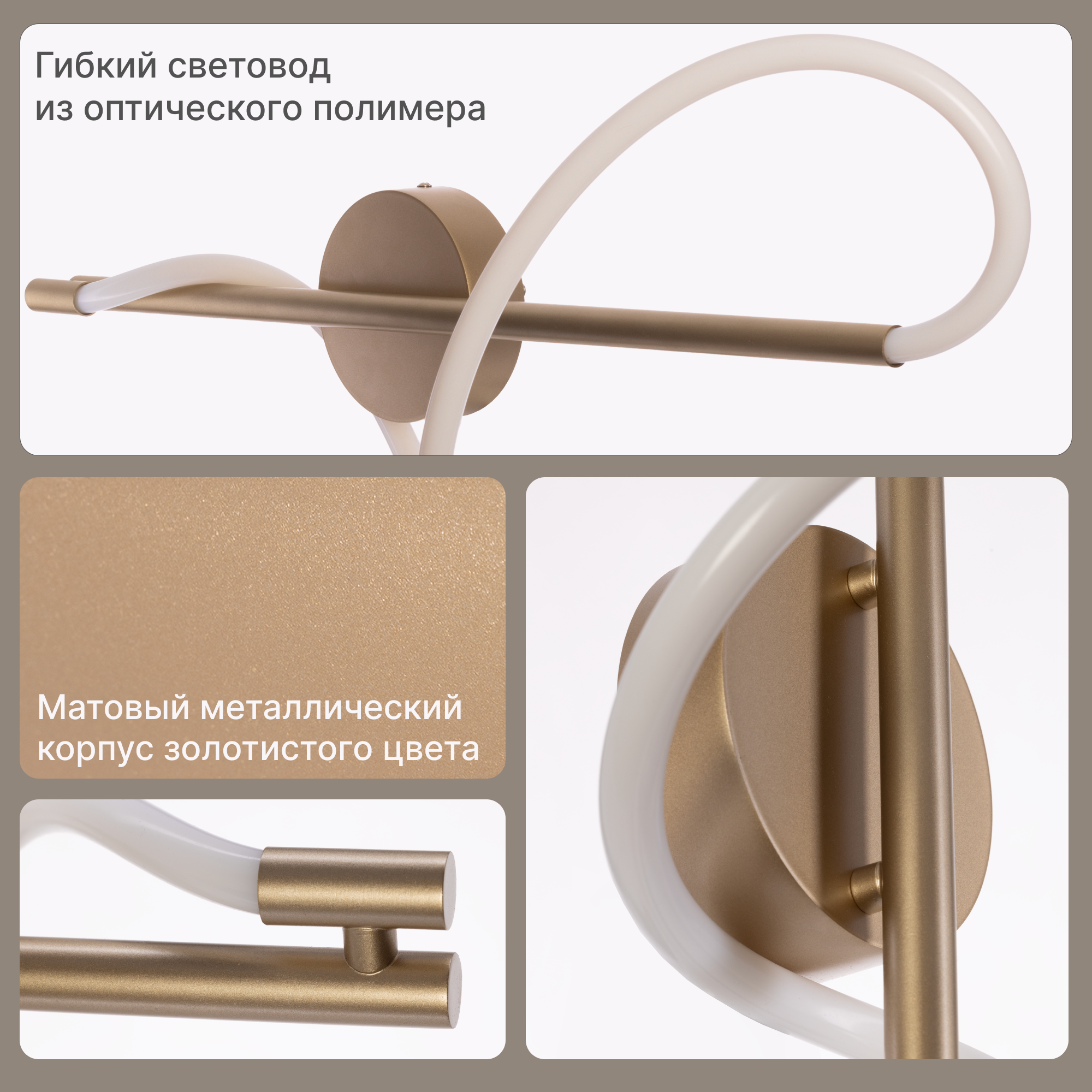 Оригинальный настенный LED светильник Ситилюкс EVA - воплощение современного стиля и элегантности. Матовый золотой металлический корпус и гибкий световод, изящно обвивающий вертикальную стойку создают неповторимый образ. Мощность изделия 12,8Вт, световой поток 1190Лм, цветовая температура 4000К нейтральный белый свет, индекс цветопередачи CRI >80. Высота модели 75см, ширина 27см, глубина 14см. Стильный настенный LED светильник - браСитилюкс EVA является идеальным вариантом дополнительного освещения в гостиной, зале и спальне, добавляя изысканности и шарма интерьеру.