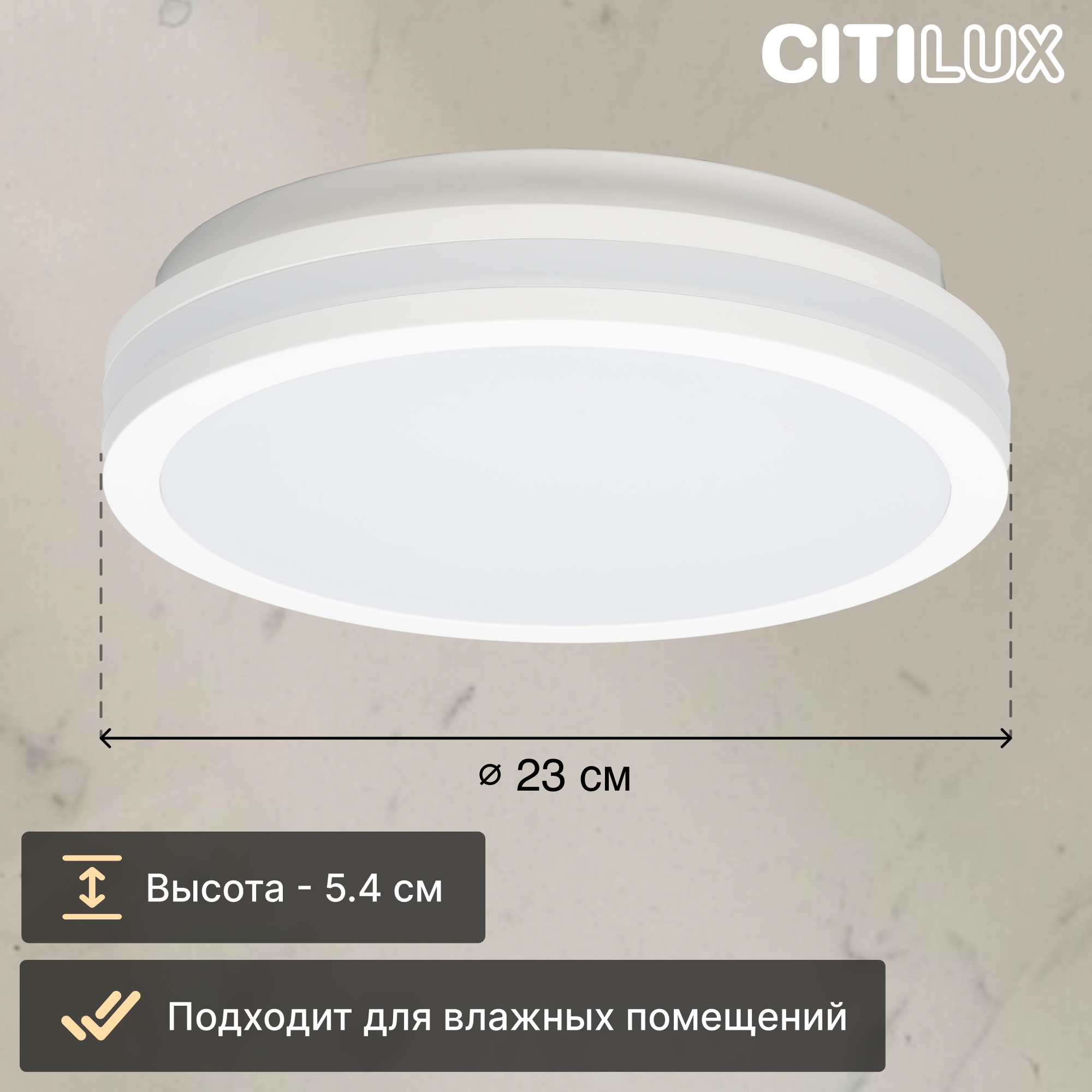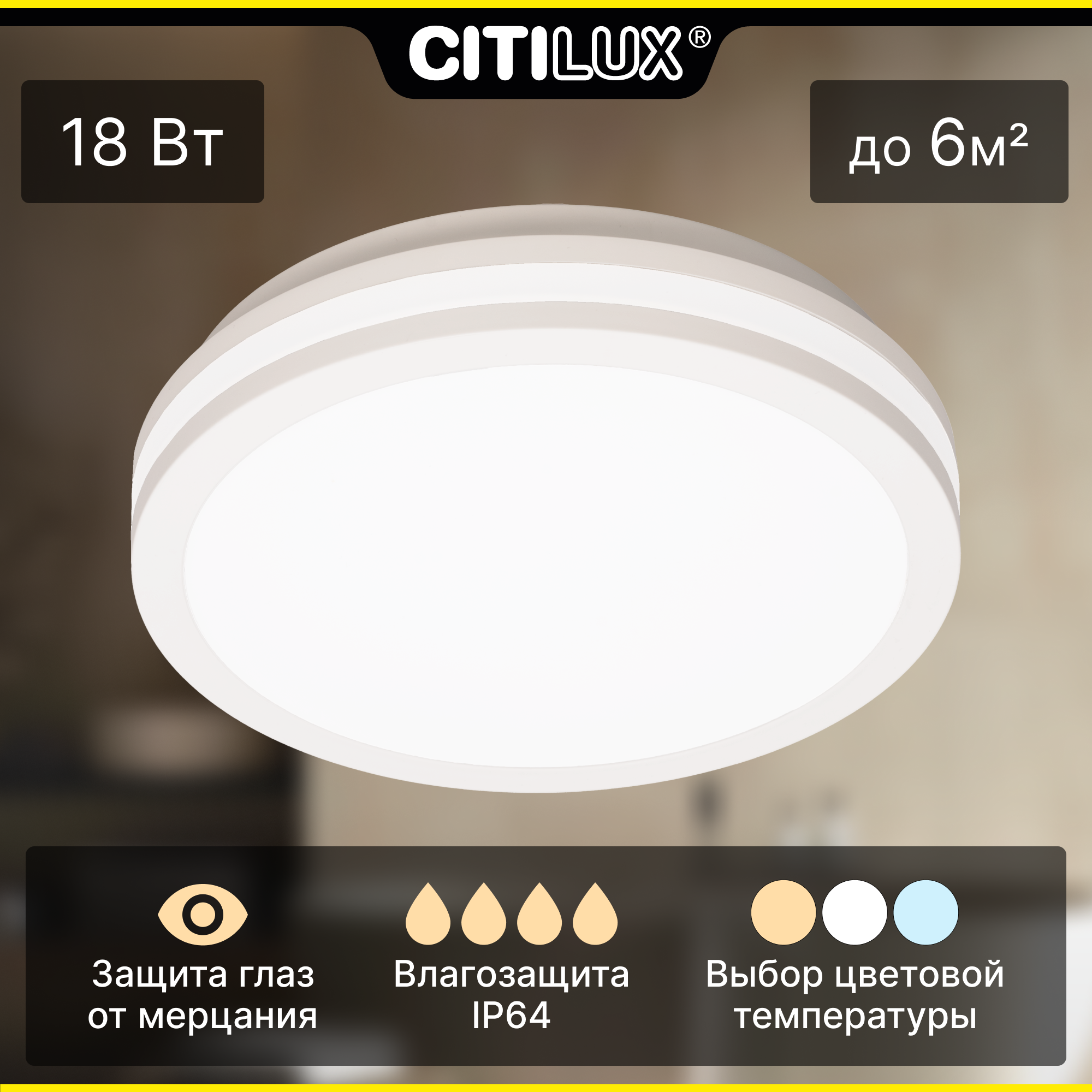 Светодиодный влагозащищённый светильник Citilux LUNS выполнен в современном стиле. Накладной светильник плоский, круглой формы. Корпус из белого ударопрочного полимера, плафон-рассеиватель матовый из оптического полимера.Диаметр изделия 23см, высота 5,4см, мощность 18Вт, класс защиты IP64, осветит до 6м². Модель оснащена переключателем цветовой температуры 3000К, 4000К, 6500К - тёплый, нейтральный, холодный свет. Перед монтажом, на тыльной стороне светильника, переключателем устанавливается выбранный вариант свечения. Свет безопасный для глаз, без мерцания и пульсаций.Светильник-таблетка Ситилюкс LUNS ярко осветит ванную комнату, туалет, совмещённый санузел и другие помещения с высокой влажностью. Отлично подойдёт для уличного освещения.