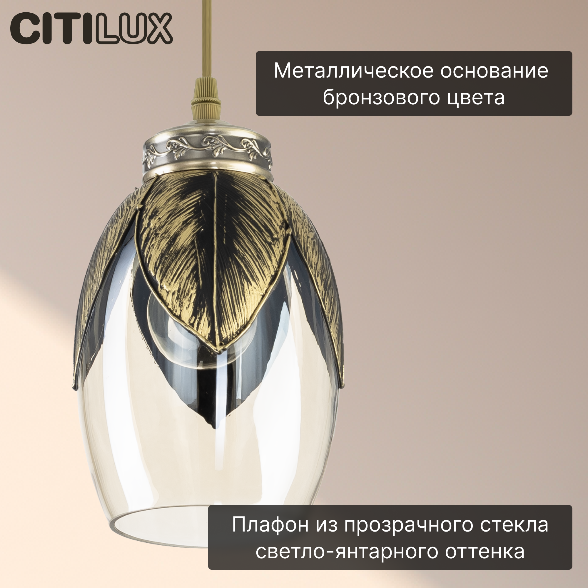 Светильник Citilux Garuda настоящее произведение искусства, созданное для того, чтобы преобразить любое пространство и придать ему нотку классической роскоши. Основание модели металлическое, круглой формы. Цвет темной состаренной бронзы идеально сочетается с плафоном из прозрачного стекла светло-янтарного оттенка, создавая гармоничное и стильное сочетание. Одинарный подвес Garuda прекрасно подойдет для оформления самых разных интерьеров - от атмосферных гостиных до кухни, спальни, кабинета, кафе или ресторана. В изделии 1 лампа с цоколем Е27 максимальной мощностью для ламп накаливания 75Вт (в комплект не входят, приобретаются отдельно). В целом, светильник Ситилюкс Garuda является идеальным выбором для тех, кто ценит изысканность, стиль и гармонию в интерьере. Он станет настоящим украшением вашего дома и будет радовать глаз на протяжении многих лет.