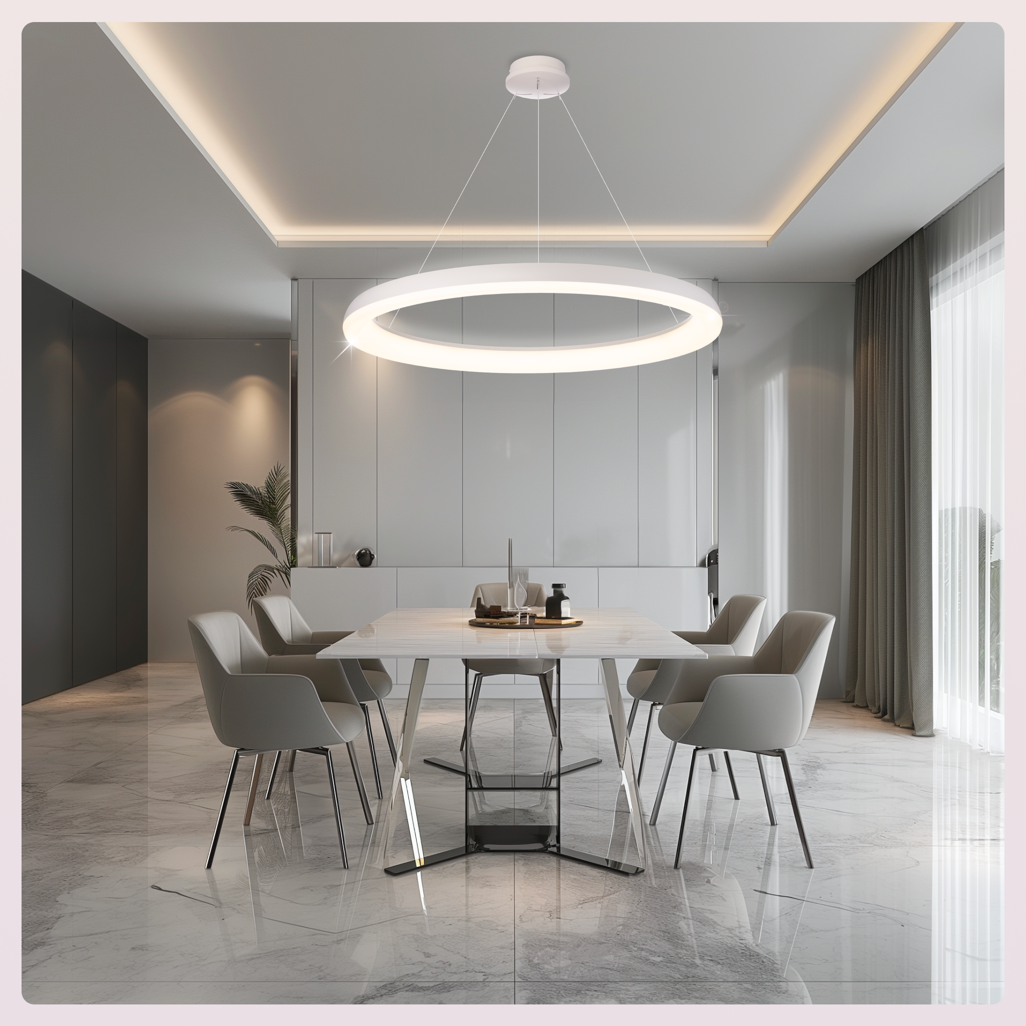 Кольцевая люстра Ситилюкс Юпитер отлично справиться с задачей основного освещения помещений как с высокими, так и с низкими потолками. Станет прекрасным решением дополнительного освещения зоны стола на кухне, в гостиной или столовой.