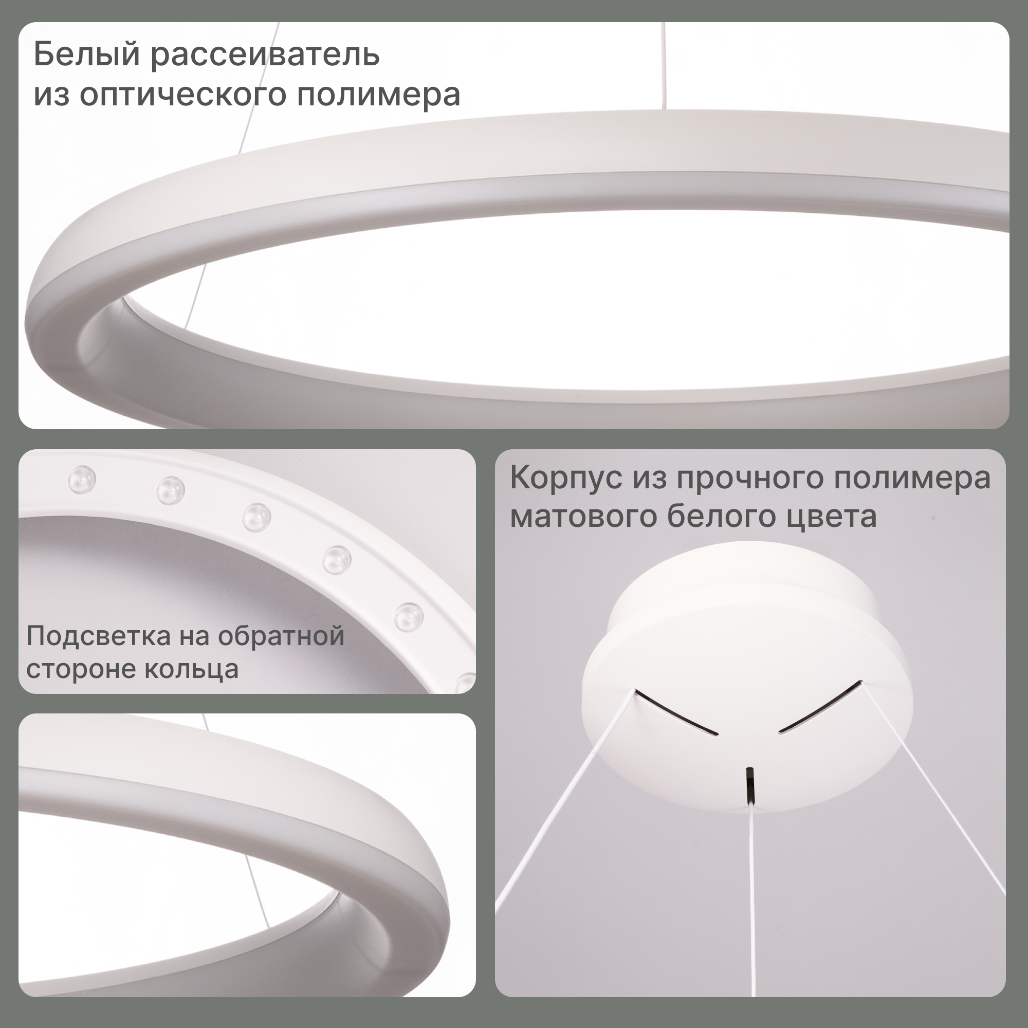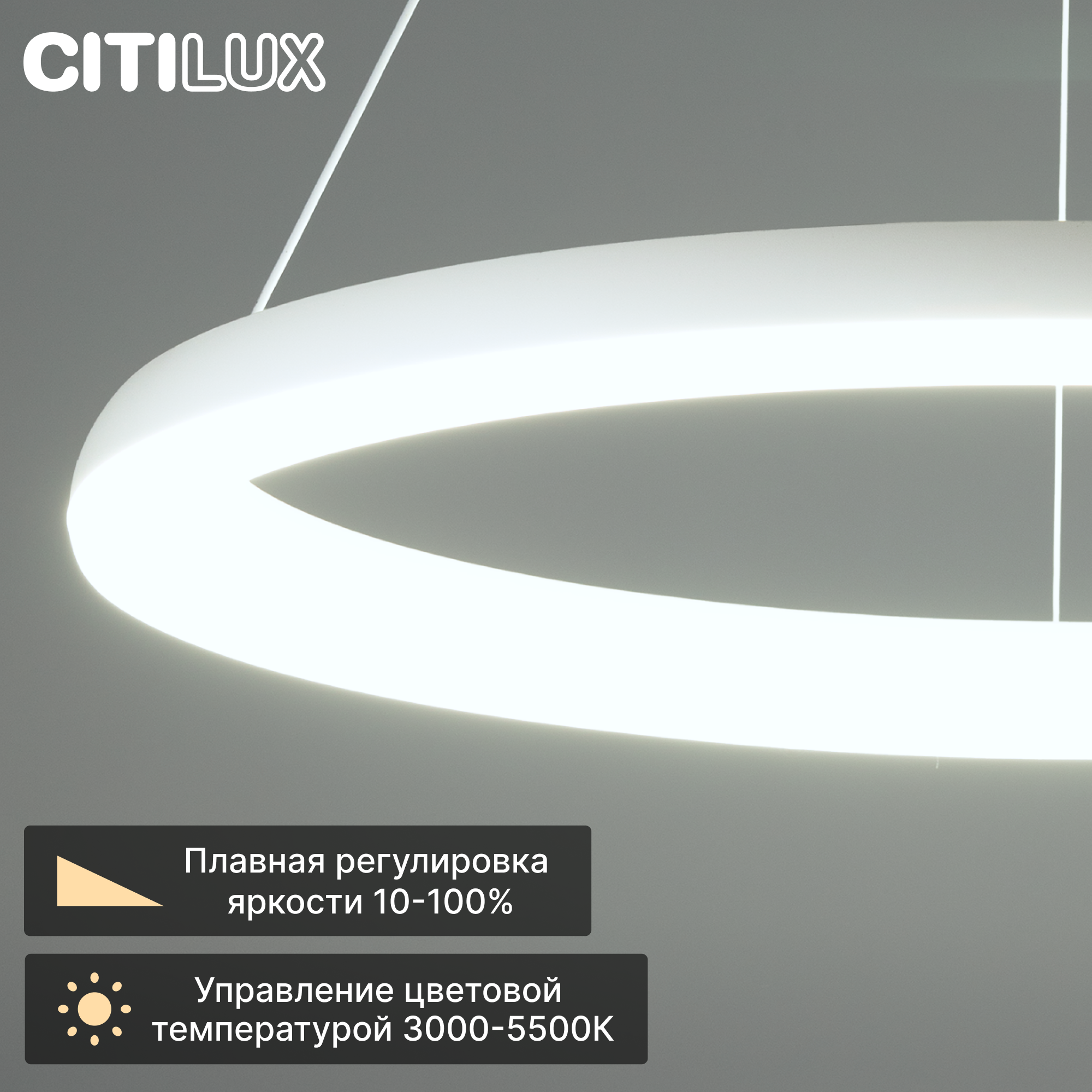 Светодиодная подвесная люстра Citilux Юпитер выполнена в современном стиле. Светильник на тросах в форме подвесного кольца, высоту и угол наклона которого можно легко изменить. Корпус изготовлен из прочного полимера белого цвета, рассеиватель из оптического полимера.