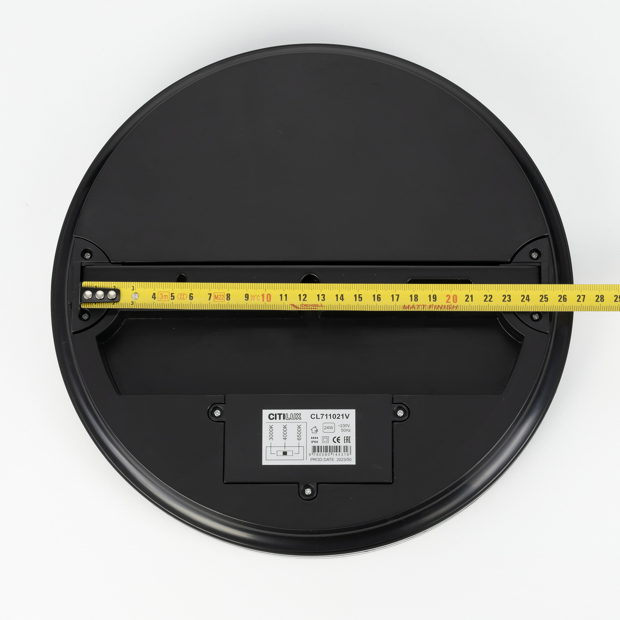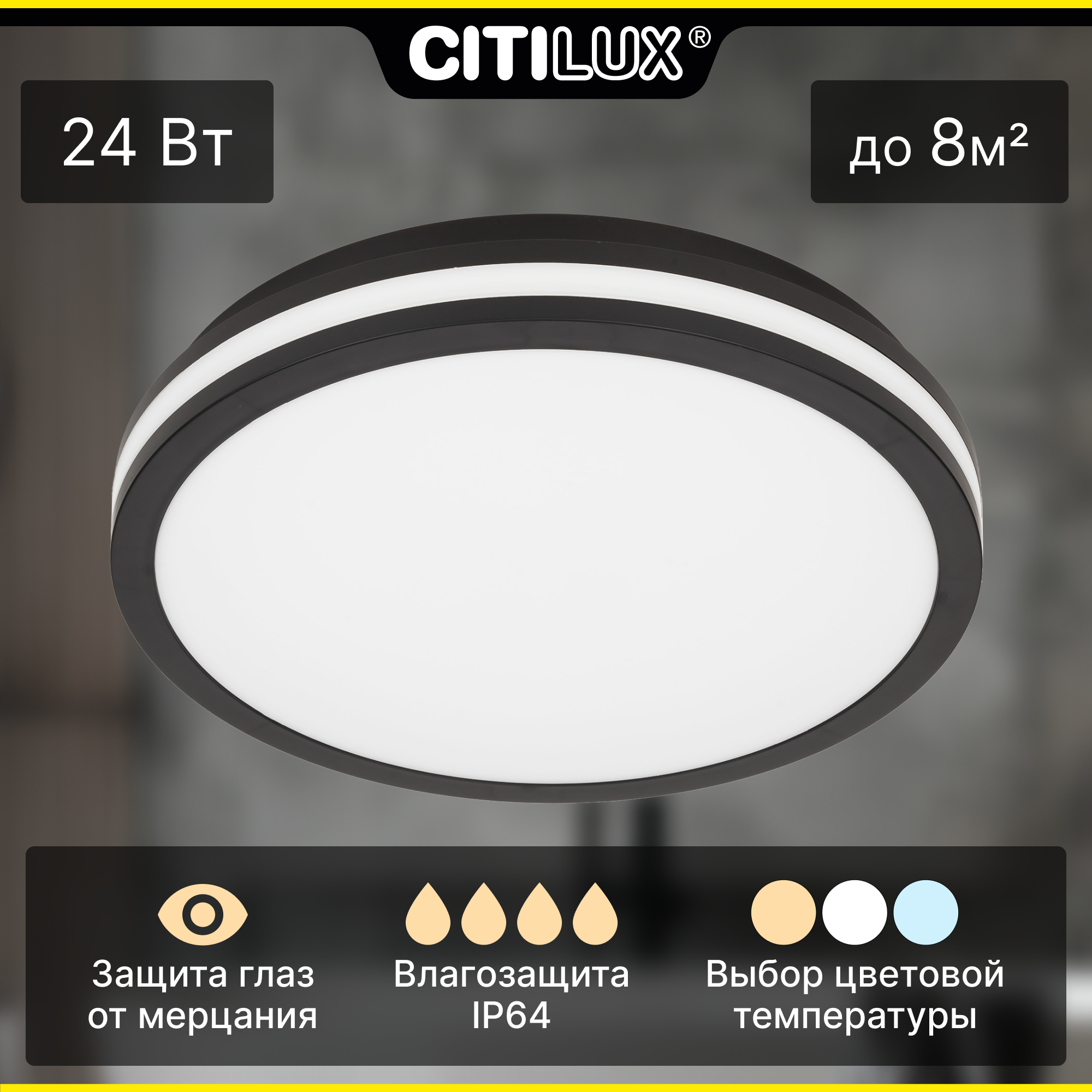 Светодиодный влагозащищённый светильник Citilux LUNS выполнен в современном стиле. Накладной светильник плоский, круглой формы. Корпус из чёрного ударопрочного полимера, плафон-рассеиватель матовый из оптического полимера.Диаметр изделия 29см, высота 5,4см, мощность 24Вт, класс защиты IP64, осветит до 8м?. Модель оснащена переключателем цветовой температуры 3000К, 4000К, 6500К - тёплый, нейтральный, холодный свет. Перед монтажом, на тыльной стороне светильника, переключателем устанавливается выбранный вариант свечения. Свет безопасный для глаз, без мерцания и пульсаций.Светильник-таблетка Ситилюкс LUNS ярко осветит ванную комнату, туалет, совмещённый санузел и другие помещения с высокой влажностью. Отлично подойдёт для уличного освещения.