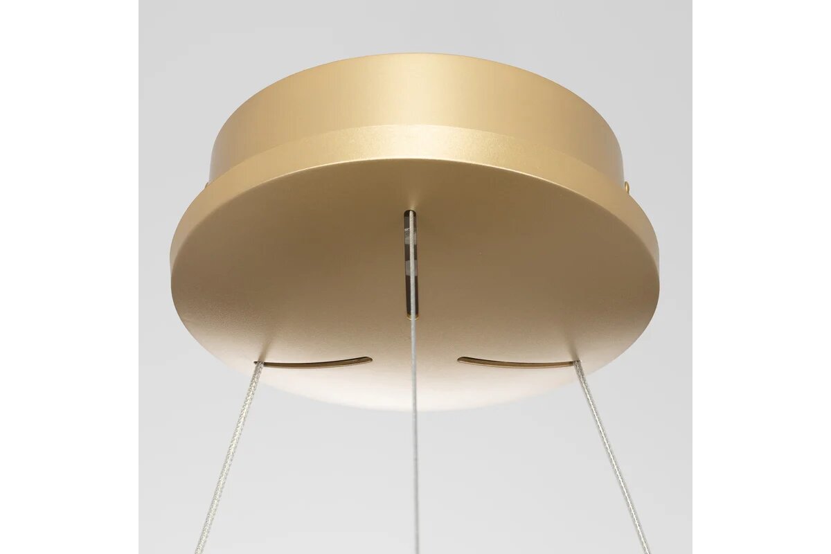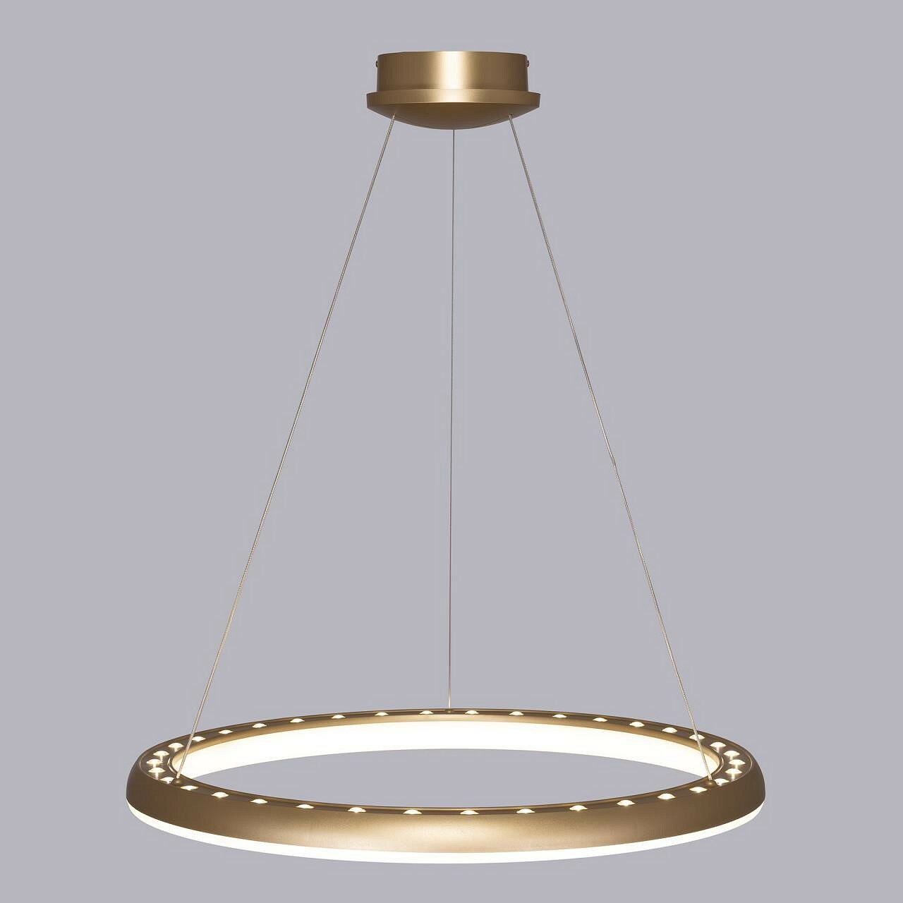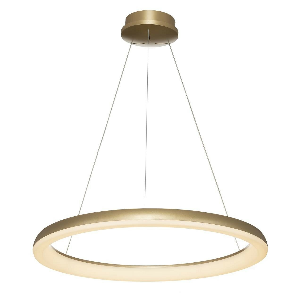 Светодиодная подвесная люстра Citilux Юпитер выполнена в современном стиле. Светильник на тросах в форме подвесного кольца, высоту и угол наклона которого можно легко изменить. Корпус из прочного полимера цвета благородного матового золота, рассеиватель из оптического полимера.