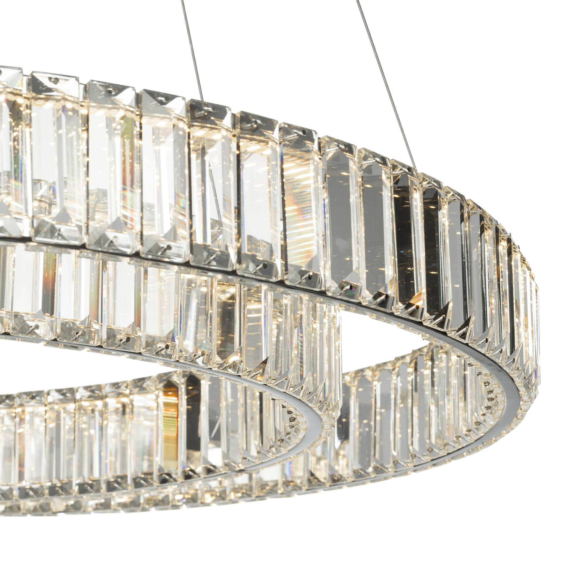 Хрустальная светодиодная люстра Citilux Чезаре истинное произведение искусства, которое не оставит равнодушными даже самых требовательных ценителей красоты. Основание круглой формы, цвет хром. Два хрустальных кольца на металлическом каркасе, подвешены на элегантных тросиках и словно парит в воздухе. Хрустальные элементы являются воплощением кристальной прозрачности и современной огранки, они играют сияющими отблесками света и создают неповторимую атмосферу роскоши и элегантности.