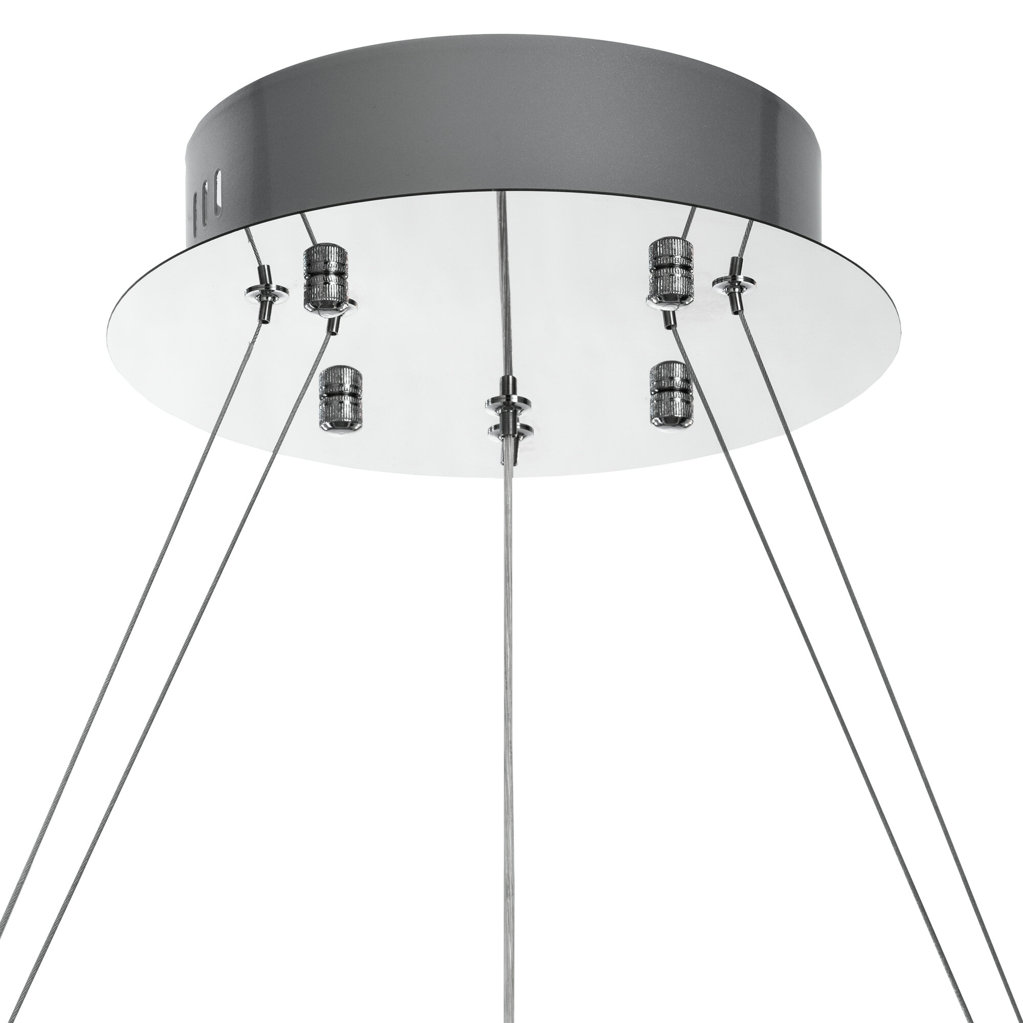 Высота подвесной модели легко регулируется в диапазоне от 40см до 1,5м, что делает ее идеальным решением для помещений с высокими, стандартными и низкими потолками. Диаметр внешнего кольца 800мм, внутреннего 600мм. Мощность изделия 110Вт, что позволяет ей осветить площадь до 30м², создавая при этом яркое и равномерное освещение.