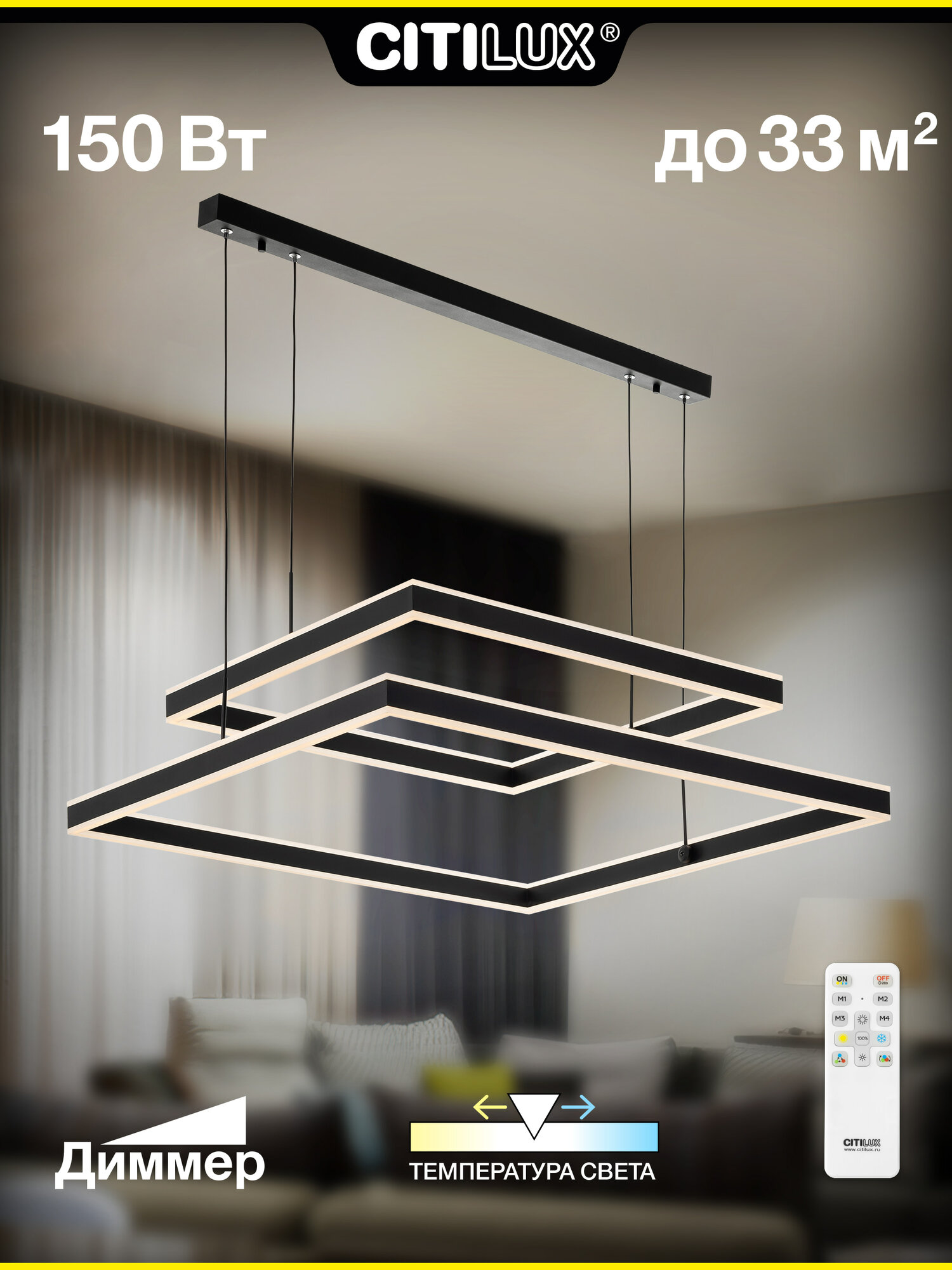 Светодиодная люстра Citilux Дуэт выполнена в современном стиле. Корпус металлический, универсального чёрного цвета. Модель с двумя подвесными квадратными светодиодными модулями-плафонами, высоту и угол наклона каждого из которых можно легко изменить. Модули изготовлены из алюминиевого профиля, рассеиватель из оптического полимера. Наличие источников света с двух сторон профиля позволяет равномерно осветить всё помещение.