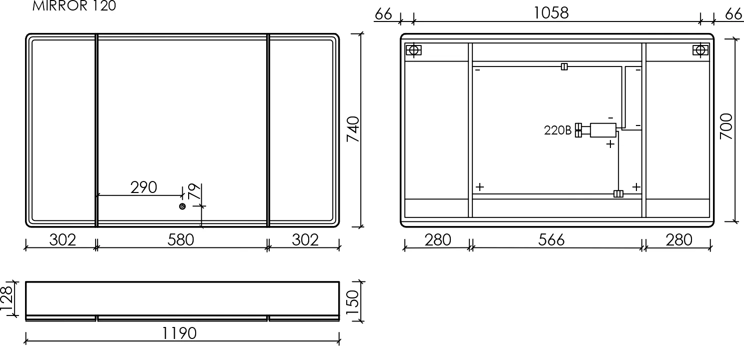 - Размер (ШхВхГ): 1190х740х150 мм.