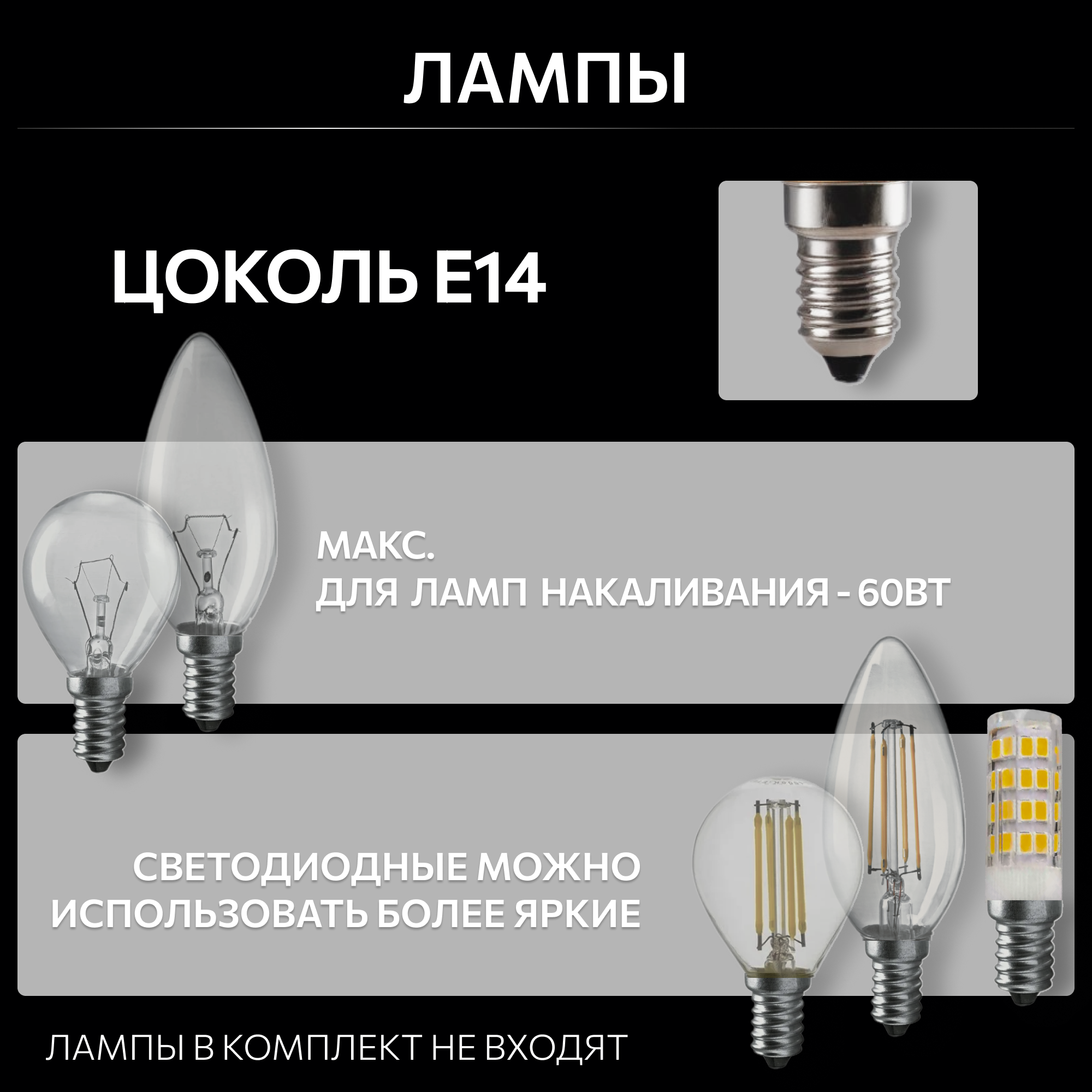 | Тип цоколя ламп | E14 |
