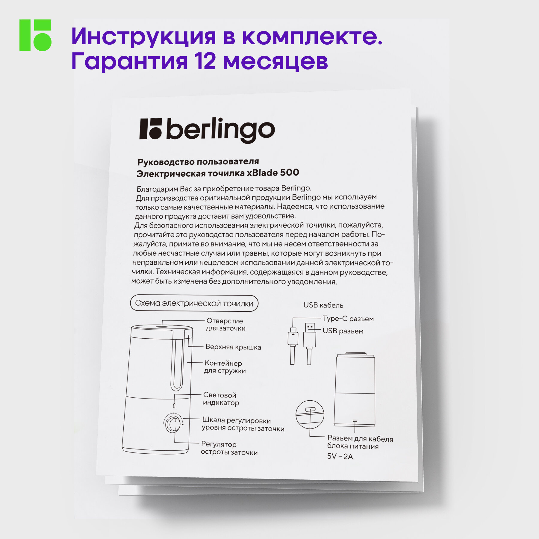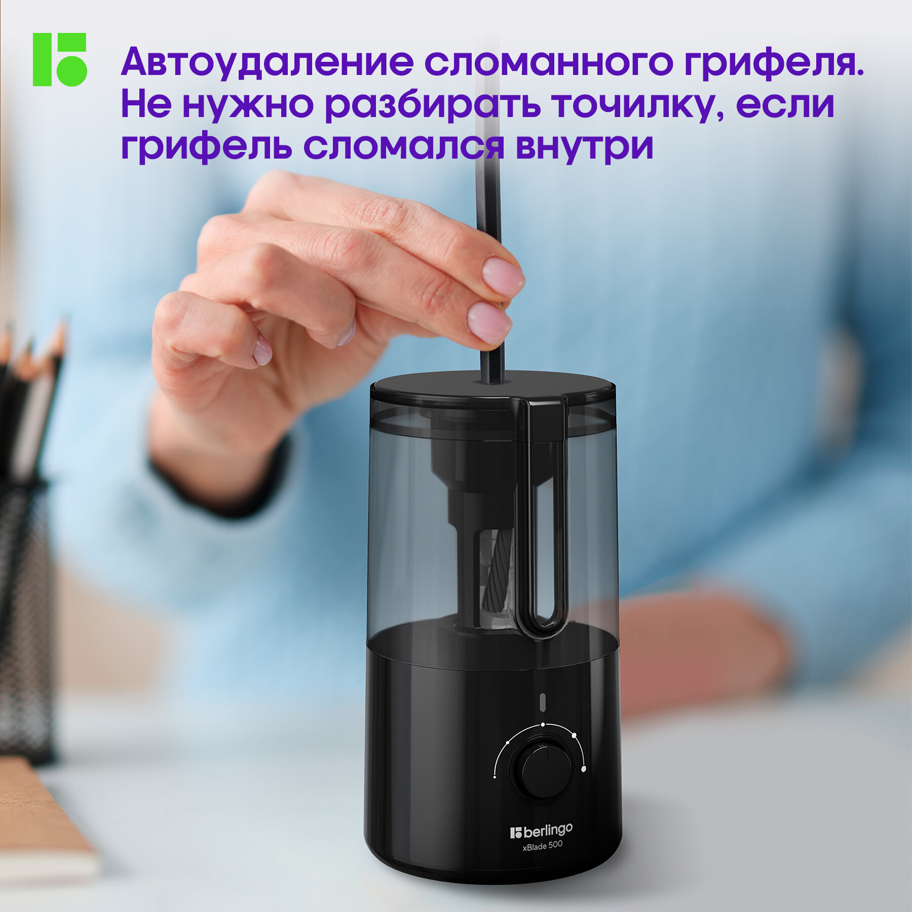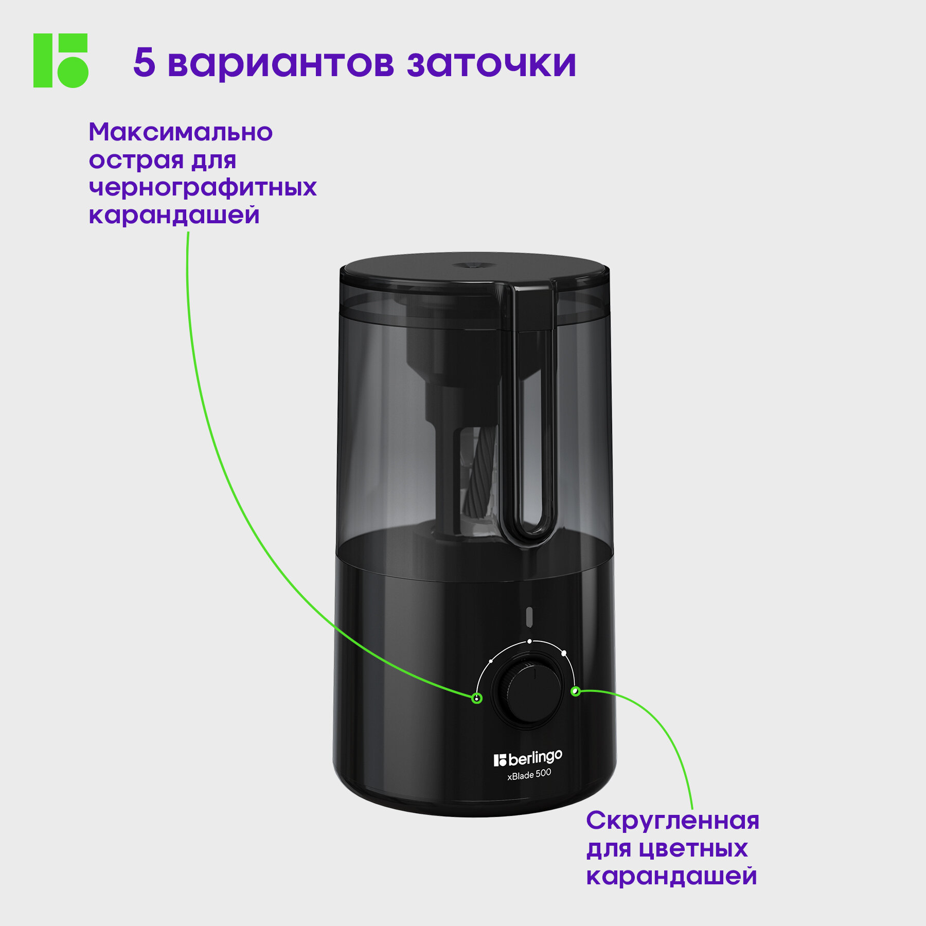 Точилка электрическая Berlingo "xBlade 500" 1 отверстие фрезерное лезвие с автостопом заточки с контейнером (BEs_37009)