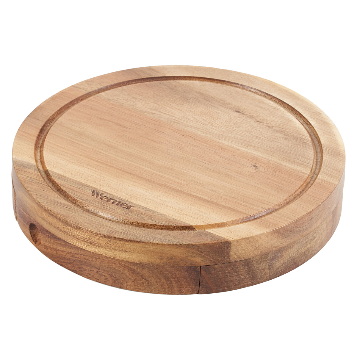 Набор изготовлен из экологичных материалов безопасных для здоровья. Основание доски и ручки предметов - из дерева акации, а рабочая часть - из нержавеющей стали. Доска не накапливает запахи, не способствует размножению бактерий, устойчива к воздействию влаги. Набор удобно хранить, места для хранения внутри доски.