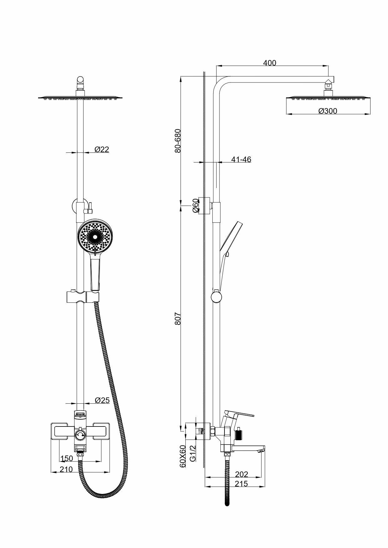 | Форма верхнего душа | Круглая |