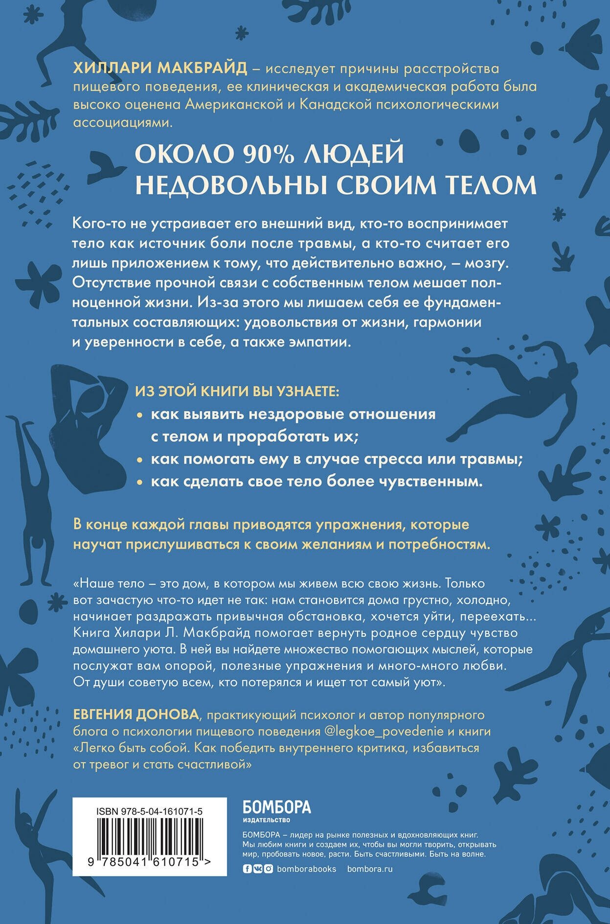 В комплект вошло: Все мы сталкивались с физическими травмами и имеем о них представление. А что мы знаем о психологических? Ведь, как бы банально это ни звучало, зачастую моральная травма накладывает бльший отпечаток на нашу жизнь, чем рана на теле. Порез быстро затянется, перелом срастется, а вот как проявит себя психологическая травма в сознательном возрасте, каким образом она способна помешать нормальной жизни и что с этим можно сделать? Доктор Бессел Ван дер Колк, один из самых известных в мире специалистов по травме, провел более 30 лет, изучая посттравматическое стрессовое расстройство. Объединяя все исследования в области травмы, свой опыт и истории пациентов, в этой книге он объясняет, как травма буквально меняет тело и мозг, лишая переживших ее нормальной жизни, близких отношений и самоконтроля. Но есть и хорошие новости автор расскажет, как мы можем помочь себе и своим близким в этой ситуации. Исследуя различные возможности исцеления: от медитации, йоги и спорта до занятий в театральных кружках доктор Бессел предлагает новые пути к выздоровлению, активируя естественную нейропластичность мозга. Тем самым доктор дарит надежду на выздоровление и полноценную жизнь тем, кто столкнулся с травмой. Внимание! Информация, содержащаяся в книге, не может служить заменой консультации врача. Перед совершением любых рекомендуемых действий необходимо проконсультироваться со специалистом. Как проработать нездоровые представления о теле и выстроить с ним гармоничные отношения? Благодаря ему мы проживаем множество прекрасных моментов, чувствуем удовольствие, энергию и связь с миром. Иногда оно работает на пределе, получает травмы, испытывает боль и стресс. И все же ощущение собственного тела и скрытой в нем мудрости это то, без чего невозможно представить здоровую и благополучную личность. Автор этой книги, психотерапевт Хиллари Макбрайд, делится личным опытом борьбы с расстройством пищевого поведения, а также приводит истории своих пациентов. Она предлагает под разными углами взглянуть на отношения с телом, сделать их более гармоничными и проработать моменты, мешающие этой гармонии.