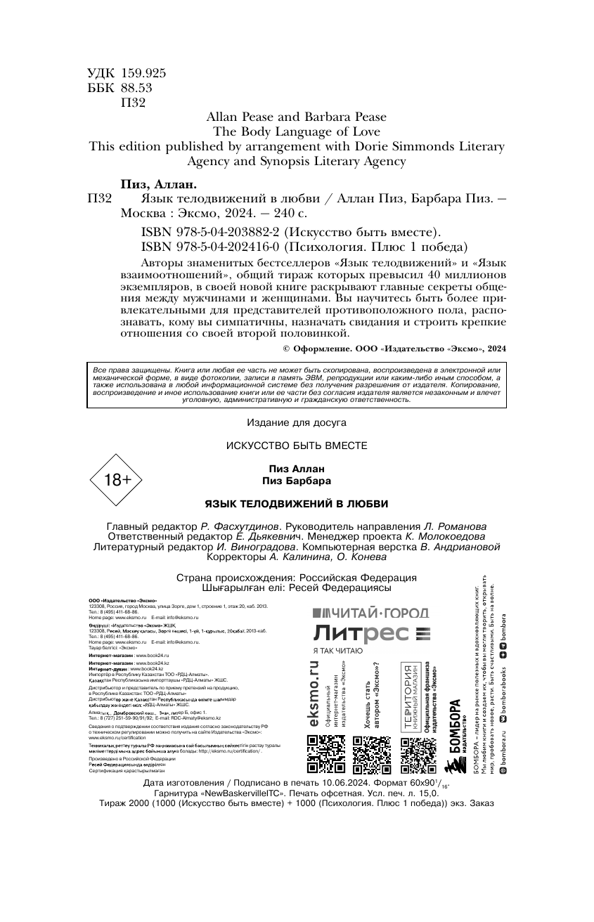 Язык телодвижений в любви (Пиз Аллан, Пиз Барбара); ООО "Издательство "Эксмо", 2024