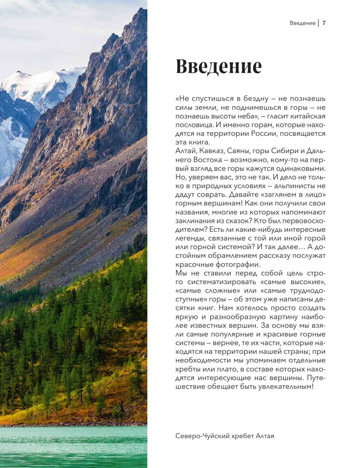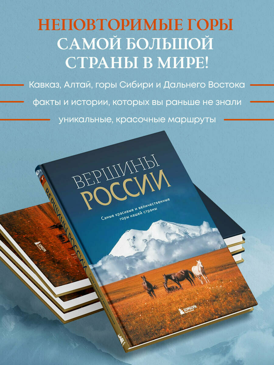 Книга «Вершины России. Самые красивые и величественные горы нашей страны» посвящена потрясающим горам, расположенным в самых разных уголках России — от Кавказа и Хибин до Урала и Дальнего Востока.