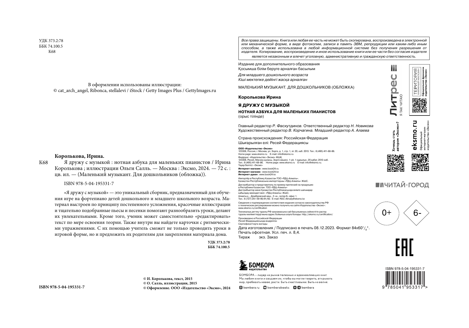 Сервис сравнения цен СкидкаГИД предлагает сравнить цены на товар «Книга: Я дружу с музыкой. Нотная азбука для маленьких пианистов (книга с карточками) (новое оформление) (Королькова Ирина Станиславовна); ООО "Издательство "Эксмо", 2024»