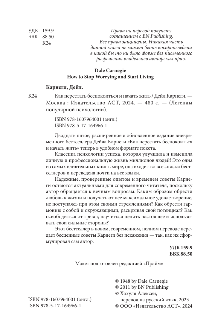 Как перестать беспокоиться и начать жить (Дейл Карнеги); АСТ, 2025