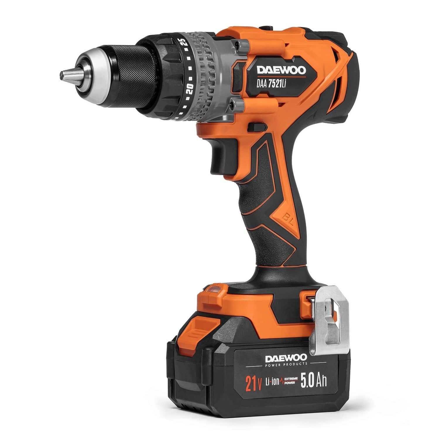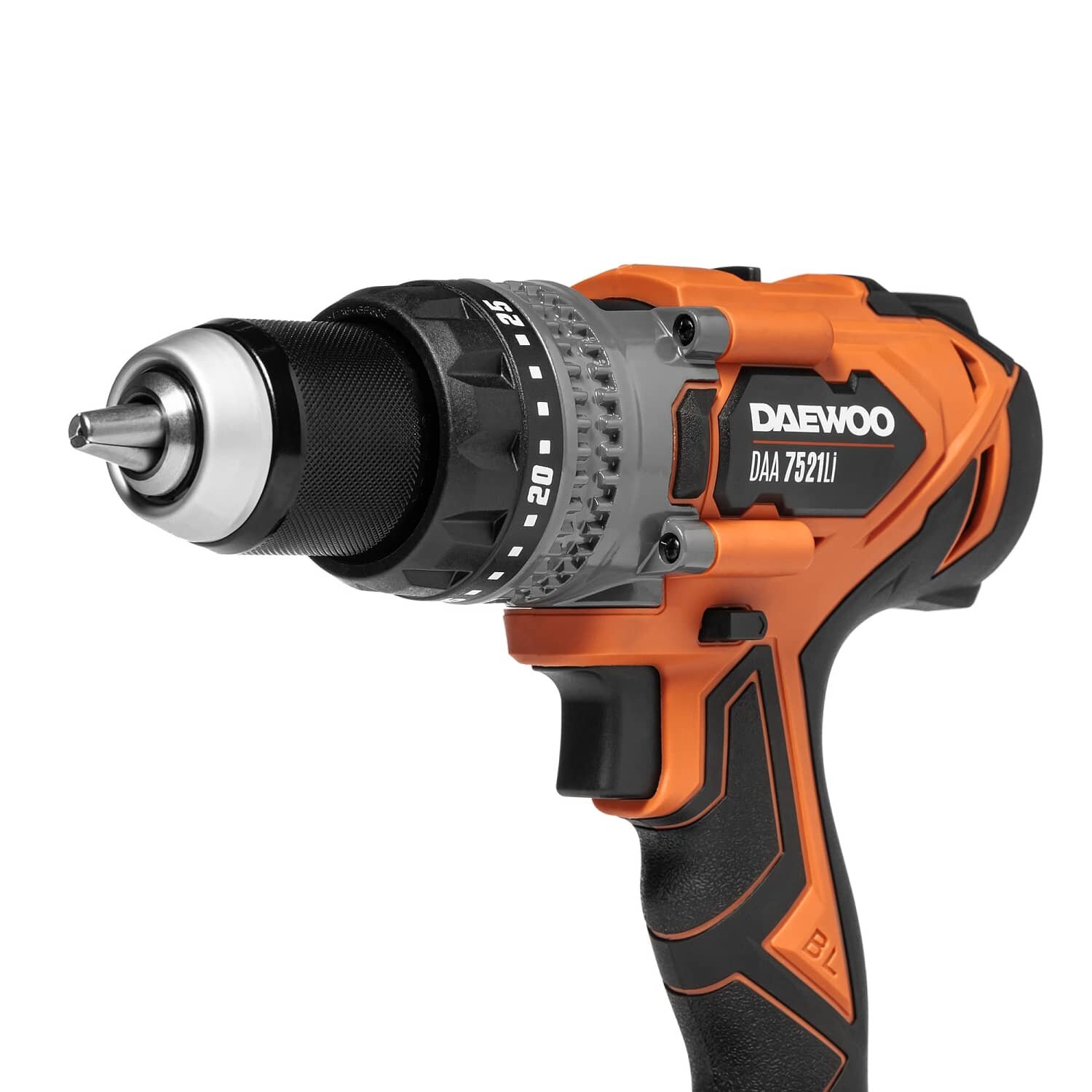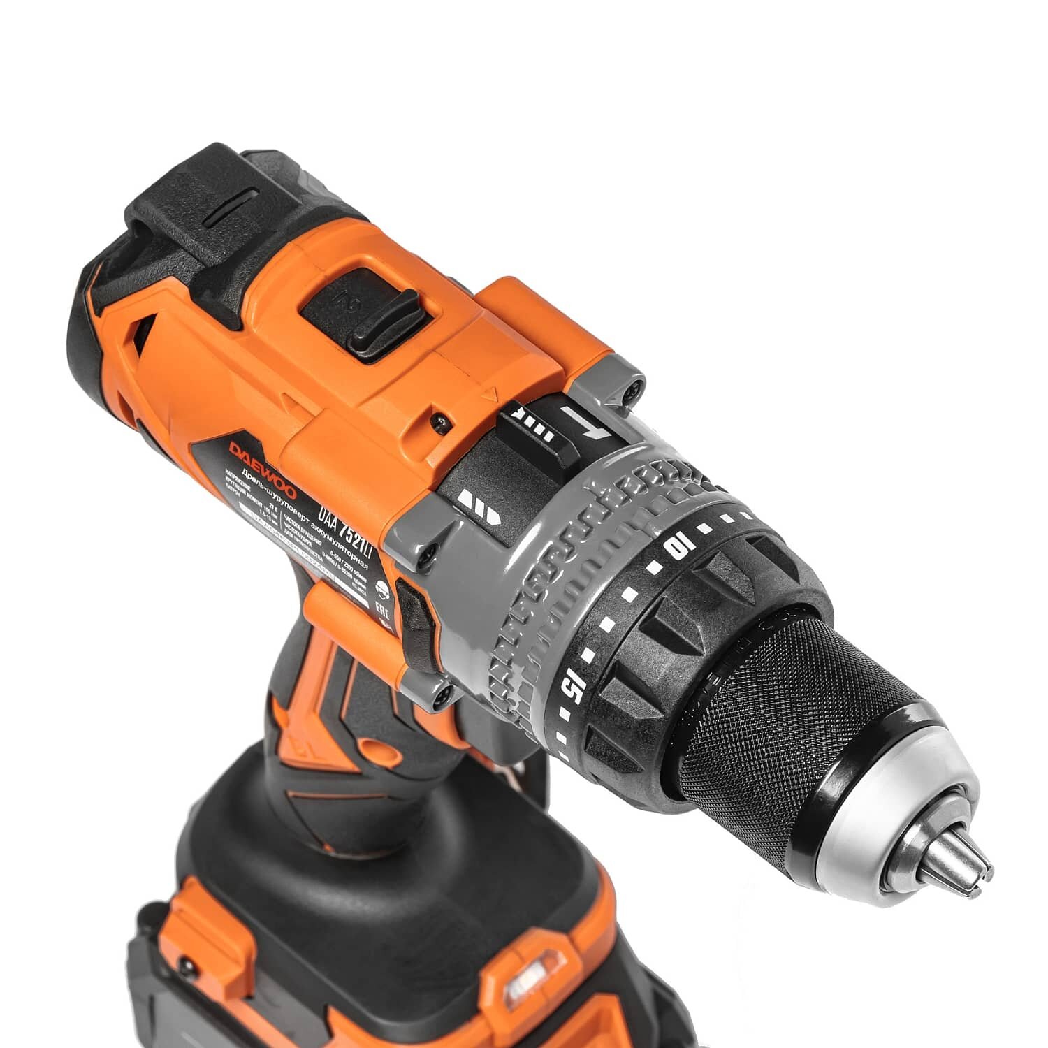 Дрель-шуруповёрт аккумуляторная ударная Daewoo DAA 7521Li SET — это мощный инструмент с напряжением аккумулятора 21 В.Преимущества Бесщёточный двигатель — повышенная производительность, увеличенный ресурс и экономия энергии аккумулятора на 30% Два аккумулятора в комплекте — увеличение скорости работы и сокращение времени выполнения задач Три режима работы: сверление, сверление с ударом и закручивание — для разных видов работ Быстрозажимной патрон — надёжный захват аксессуаров и высокая скорость замены инструмента Металлическая скоба — для надёжного крепления к поясу монтажника LED-подсветка рабочей зоны — комфортная работа в условиях ограниченного освещения Выключатель с плавной регулировкой скорости — для комфортной работы оператора Реверс — для выкручивания крепежа и извлечения застрявшего сверла Прорезиненная рукоятка — комфорт при длительном использовании