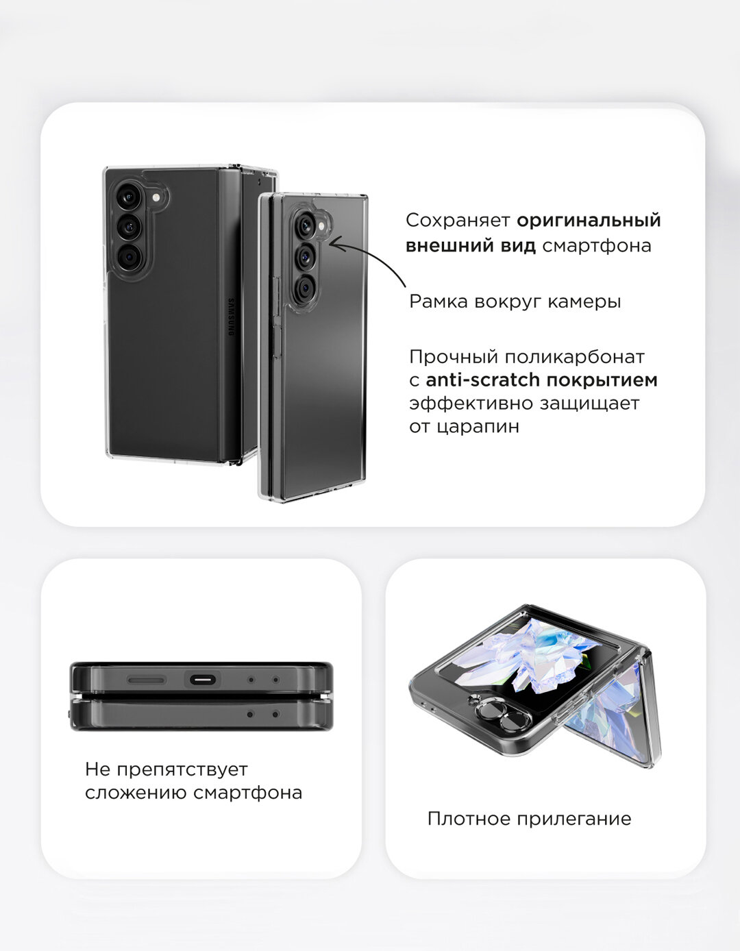Чехол изготовлен из высококачественного поликарбоната, который обладает невероятной прочностью – он способен защитить от царапин и выдержать сильные удары. Мы позаботились о Вашем комфорте при использовании чехла, поэтому добавили бархатистое Soft Touch покрытие, которое создает приятные тактильные ощущения, а также предотвращает скольжение в руке.Каждая деталь чехла продумана до мельчайших нюансов, чтобы Ваш смартфон оставался в идеальном состоянии. Боковые грани плотно прилегают к устройству, обеспечивая надежную защиту от пыли, грязи и других повседневных внешних воздействий. Вы забудете о неудобствах при нажатии на кнопки смартфона — наш чехол позволяет легко и комфортно управлять устройством, без каких-либо помех.Конструкция чехла разработана с учетом особенностей складных смартфонов и всех потребностей их пользователей. Чехол легко и безупречно складывается вместе со смартфоном, обеспечивая идеальное сочетание изысканного стиля и максимального комфорта при его использовании.Защитный чехол vlp станет Ваш