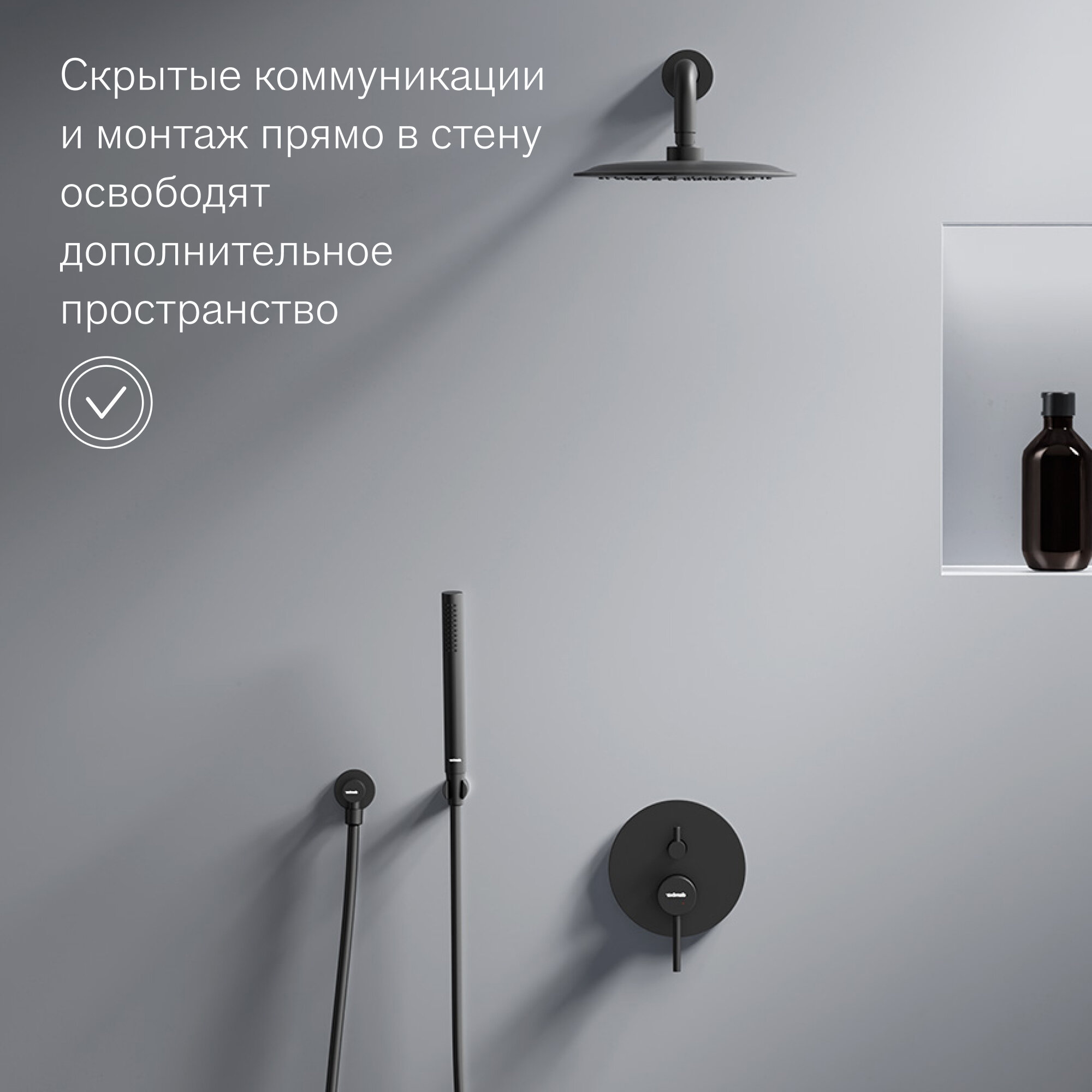| Состав комплекта | верхний душ, настенный держатель, смеситель, шланговое подключение, душевой гарнитур |
