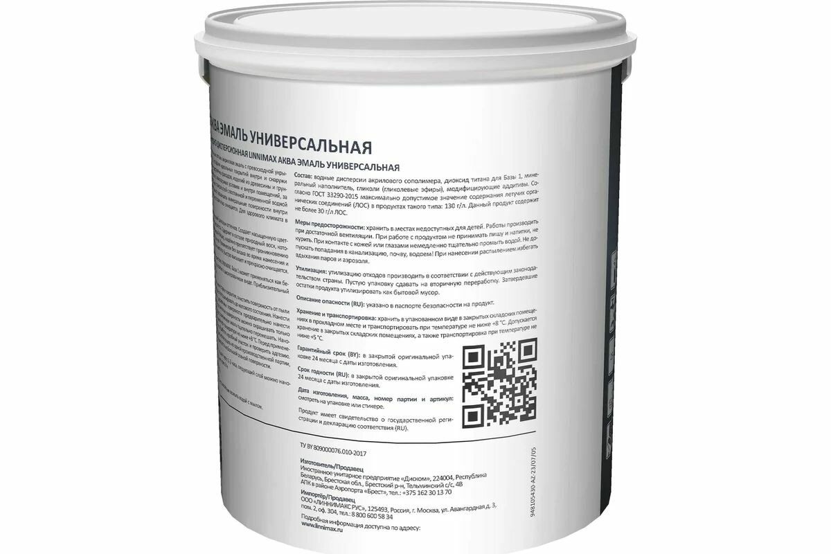 Эмаль универсальная Linnimax Аква шелковисто-матовая цвет белый база 1 2.5 л