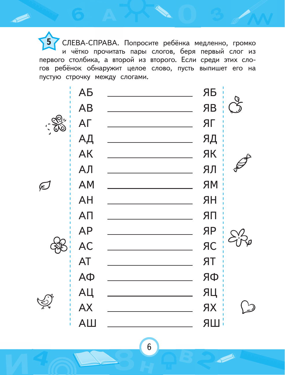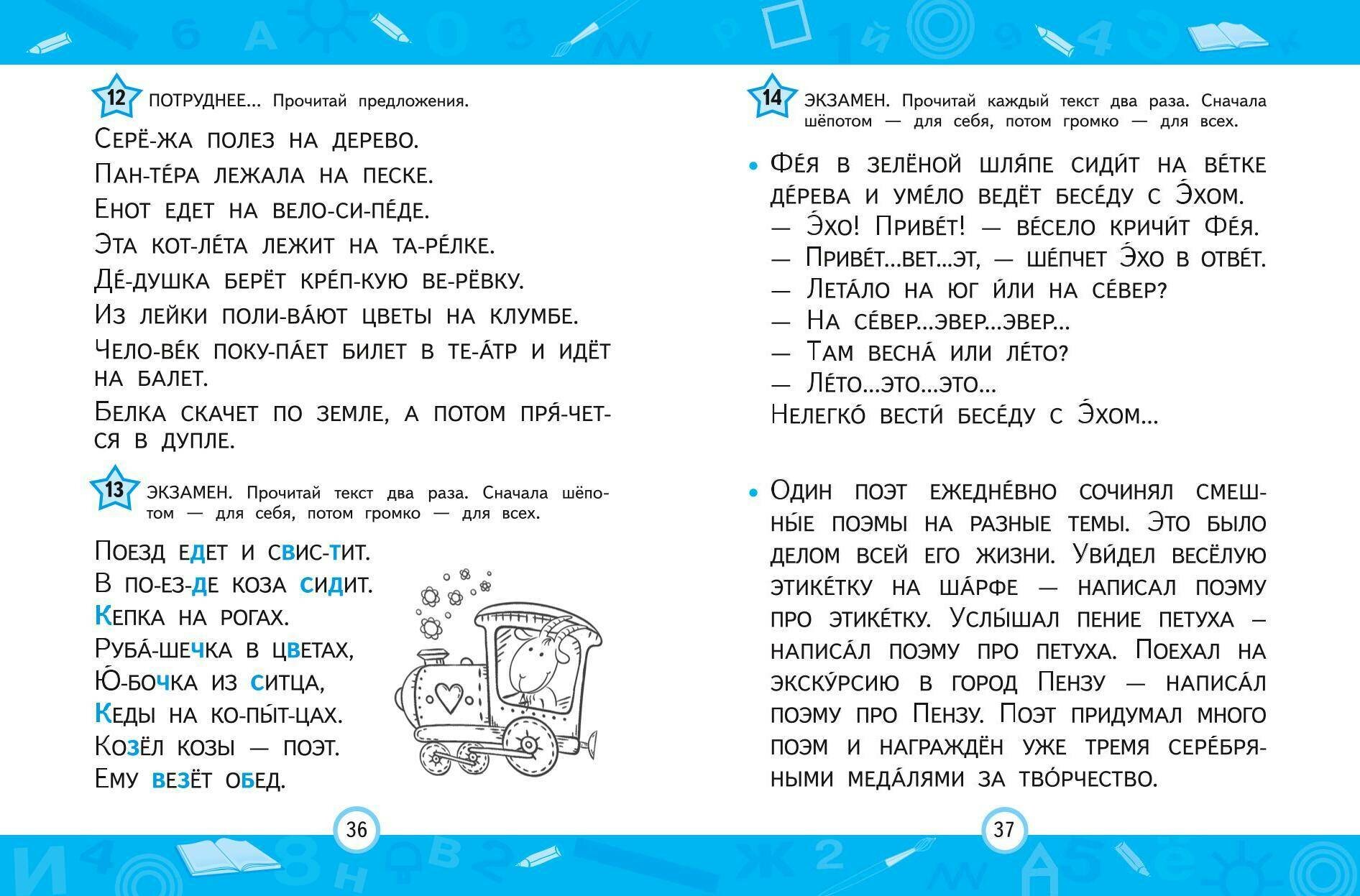 Развивающая книга-тренажёр от издательства «Эксмо» предназначена для младших школьников, которые знают буквы и умеют читать, но испытывают трудности со слиянием звуков в слоги, прочтением слогов и слиянием слогов в слова. Занимаясь по пособию, ребёнок сможет довести навык беглого чтения до автоматизма, повысить концентрацию внимания, расширить словарный запас и сформировать интерес к чтению. В основе книги Емельяновой Е. Н., практикующего педагога -нейропсихолога «Центра детской нейропсихологии им. А. Р. Лурия» и признанного специалиста в этой области, лежит нейропсихологический подход, способствующий быстрому и эффективному обучению чтению. Развивающие задания составлены таким образом, чтобы каждое упражнение продвинуло маленького читателя на шаг вперёд. Чтобы результат был заметным и устойчивым, потребуется помощь взрослого, который должен разбирать с ребёнком задания и контролировать правильность их выполнения. Освоение и автоматизация навыка чтения будут неоценимым вкладом в образование ребёнка и позволят ему реализовать заложенные в нём таланты.