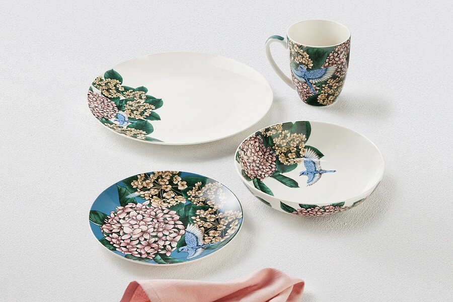 | Комплектация (для интернет-магазина) | Тарелка обеденная 27,5см - 4шт; тарелка закусочная 19см - 4шт; салатник 19см - 4шт; кружка 420мл - 4шт; подарочная упаковка |