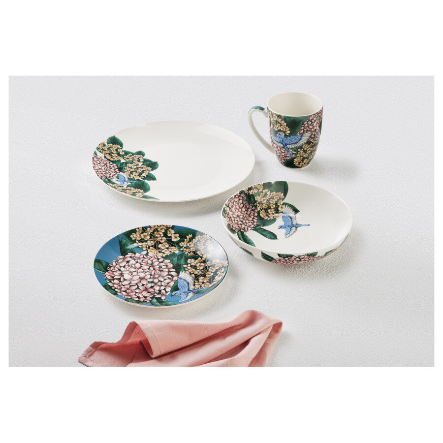 | Комплектация | Обеденные тарелки 27,5 см - 4 шт., Закусочные тарелки 19 см - 4 шт., Салатник 19 см 0,8 л - 4 шт., Кружка 0,42 л - 4 шт. |