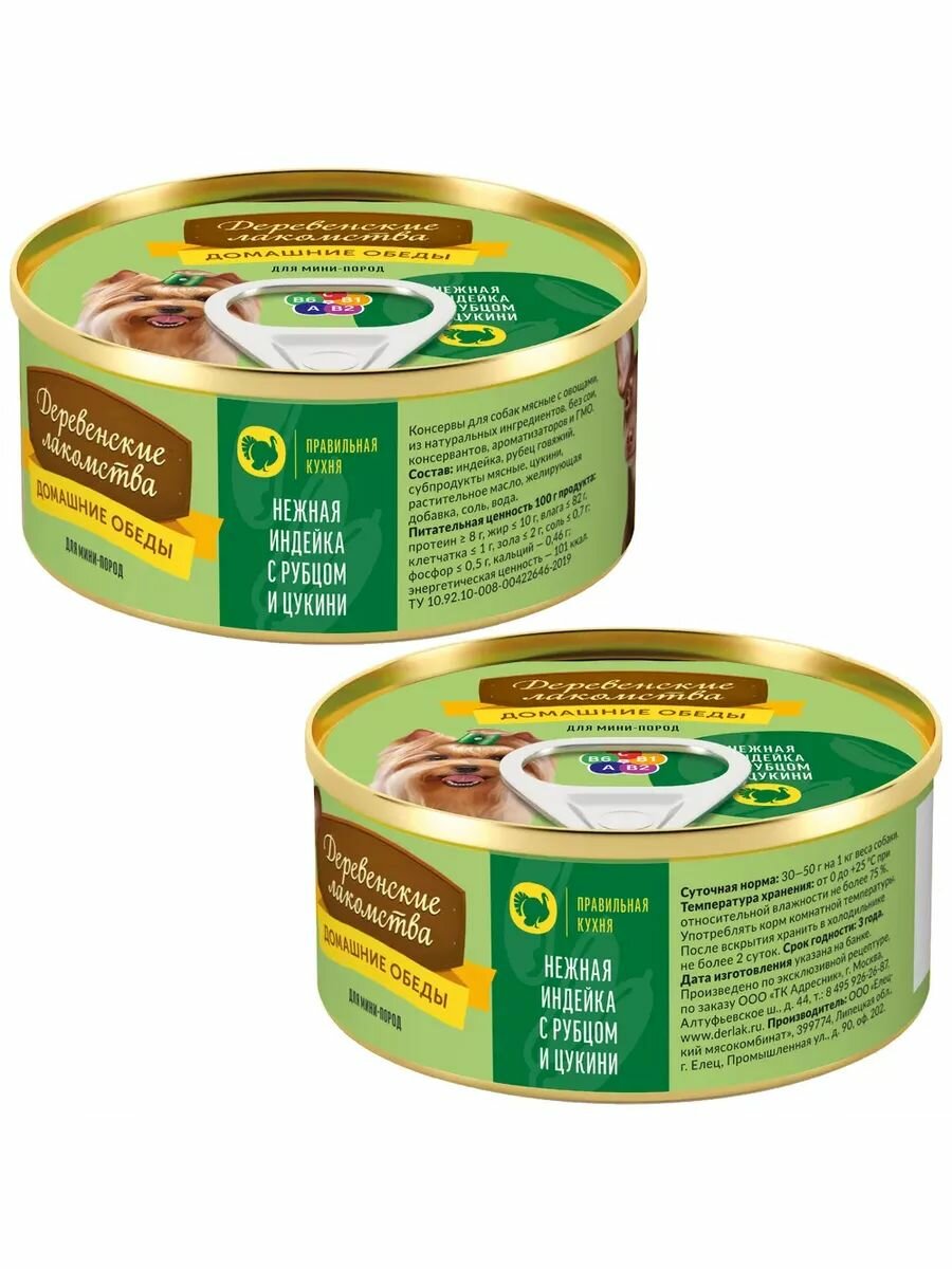 Корм для собак Деревенские лакомства Домашние обеды нежная индейка с рубцом и цукини 100 г
