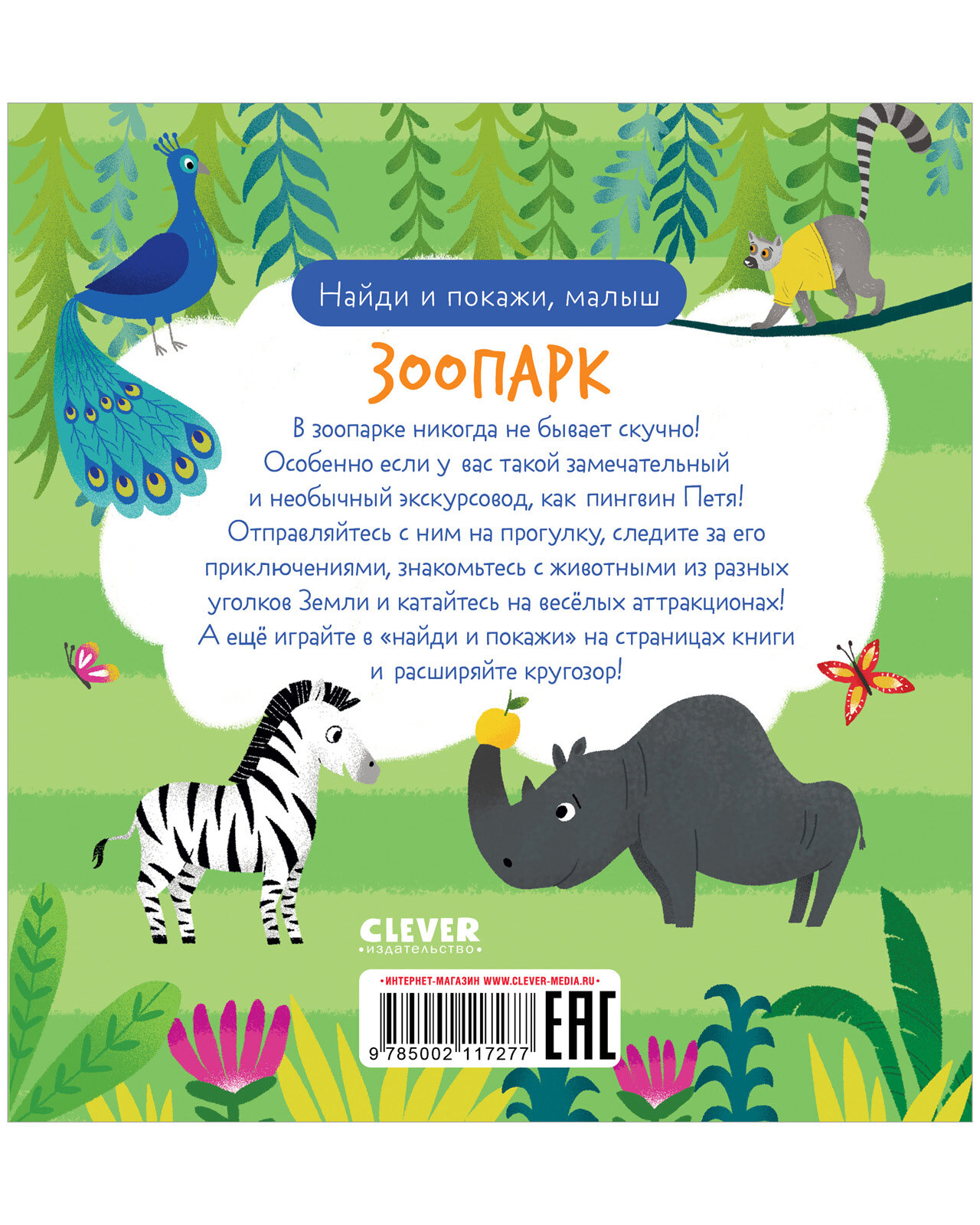 В зоопарке никогда не бывает скучно! Особенно если у вас такой замечательный и необычный экскурсовод, как пингвин Петя! Отправляйтесь с ним на прогулку, следите за его приключениями, знакомьтесь с животными из разных уголков Земли и катайтесь на весёлых аттракционах! А ещё играйте в «найди и покажи» на страницах книги и расширяйте кругозор!