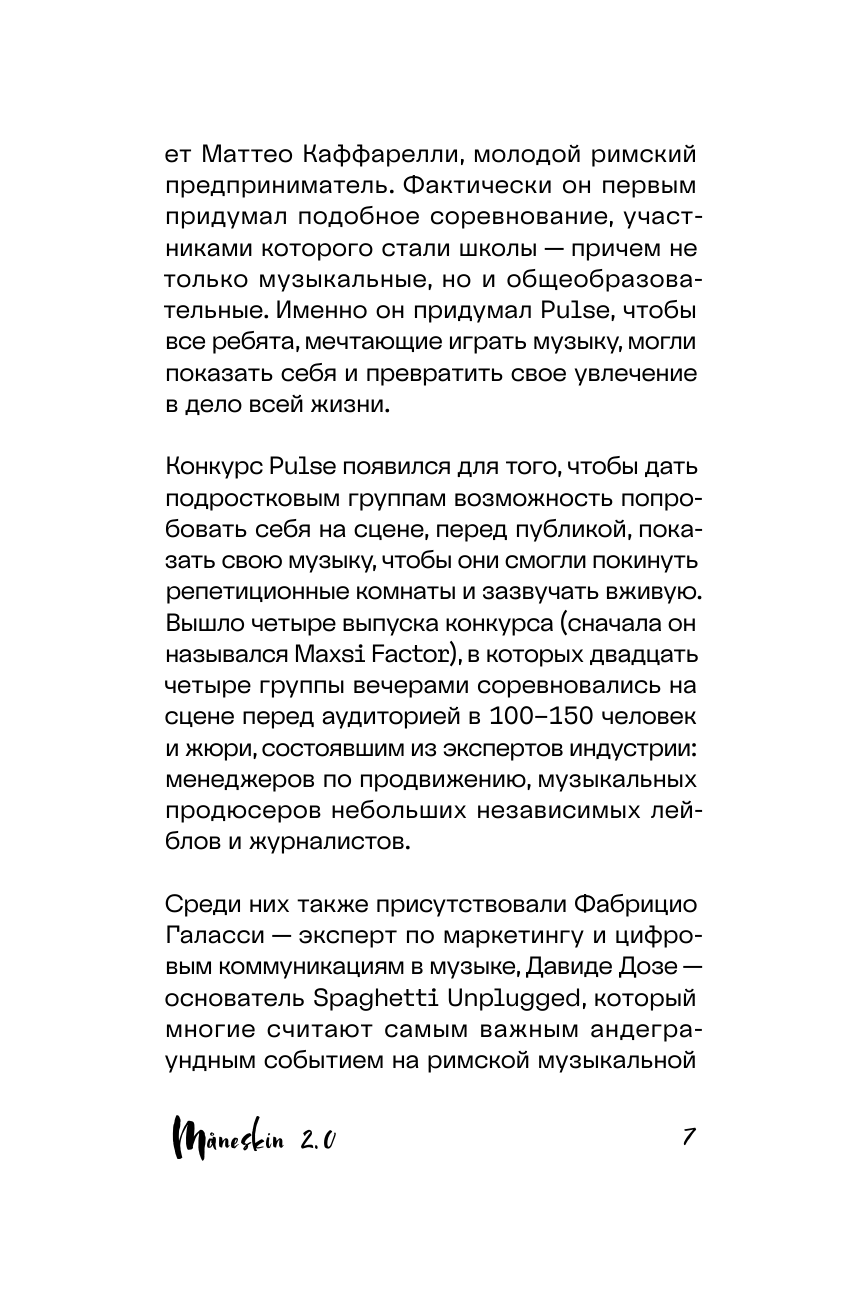Вспомните как Дамиано, Виктория, Томас и Итан прошли свой путь на вершину и как пережили мировую славу. Эта книга — максимально полная и подробная история Maneskin, рассказанная итальянской журналисткой Патрицией де Росси. Из книги вы узнаете все о первых концертах группы, о ее участниках и о том, в чем же был секрет успеха, в одно мгновение превознесшего группу в разряд культовых.