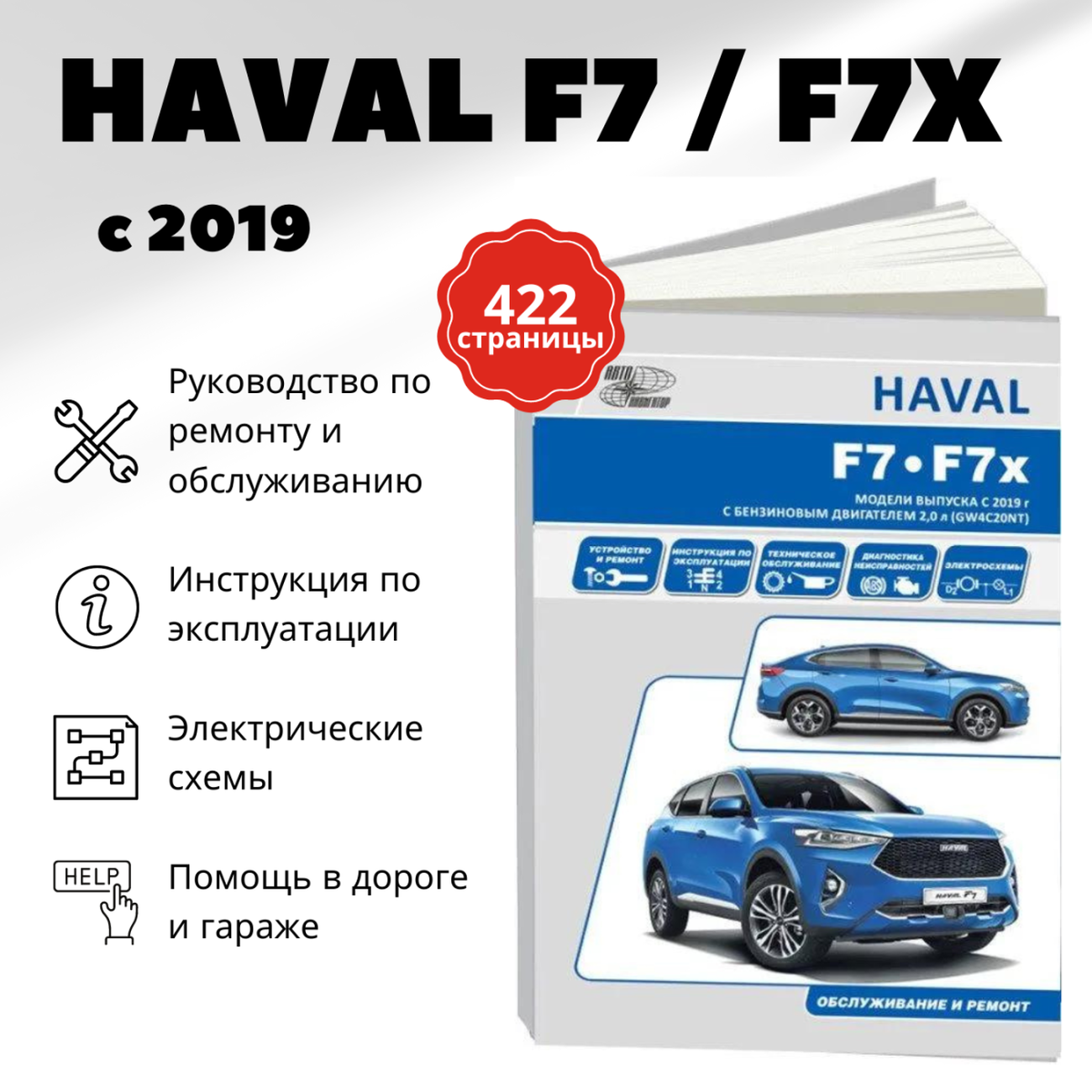 HAVAL F7/F7x. Модели выпуска с 2019 г с бензиновым турбодвигателем GW4C20NT. Руководство по эксплуатации устройство техническое обслуживание ремонт; Автонавигатор, 2023
