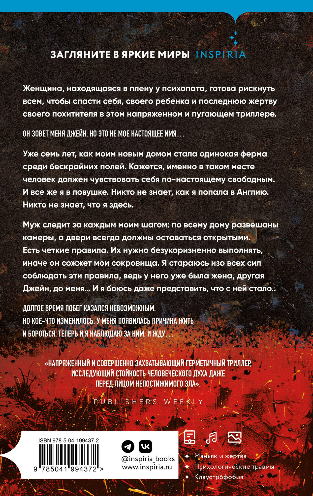 «НАПРЯЖЕННЫЙ И СОВЕРШЕННО ЗАХВАТЫВАЮЩИЙ ГЕРМЕТИЧНЫЙ ТРИЛЛЕР, ИССЛЕДУЮЩИЙ СТОЙКОСТЬ ЧЕЛОВЕЧЕСКОГО ДУХА ДАЖЕ ПЕРЕД ЛИЦОМ НЕПОСТИЖИМОГО ЗЛА». — PUBLISHERS WEEKLY