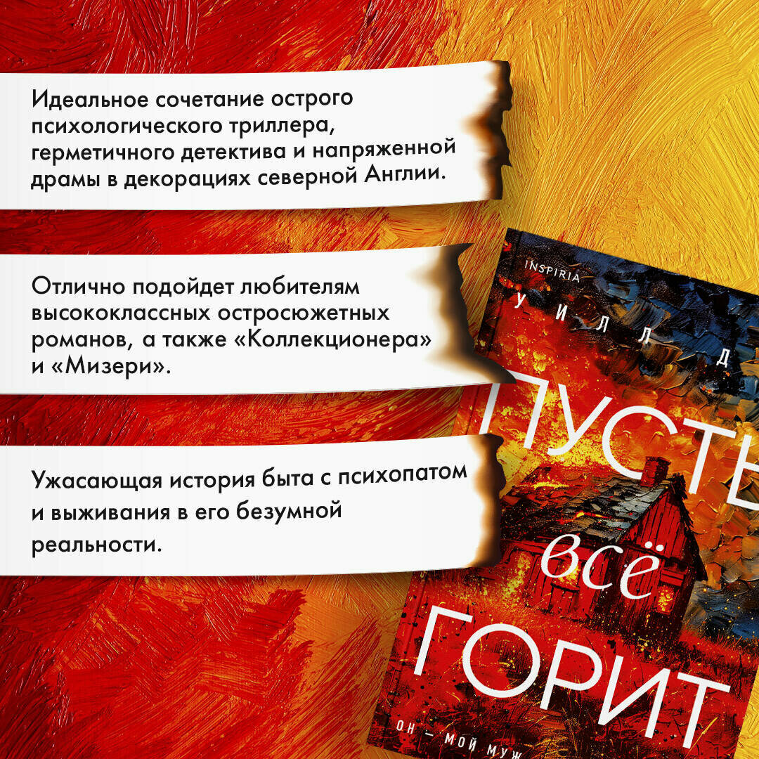 «Этот выдающийся триллер Уилла Дина, возможно, станет лучшей книгой, которую вы прочтете в этом году. "Пусть все горит"» — напряженная, мрачная и совершенно леденящая душу история, — я прочувствовала ее до глубины души». — Дженнифер Хиллер, автор мирового бестселлера «Маленькие грязные секреты»