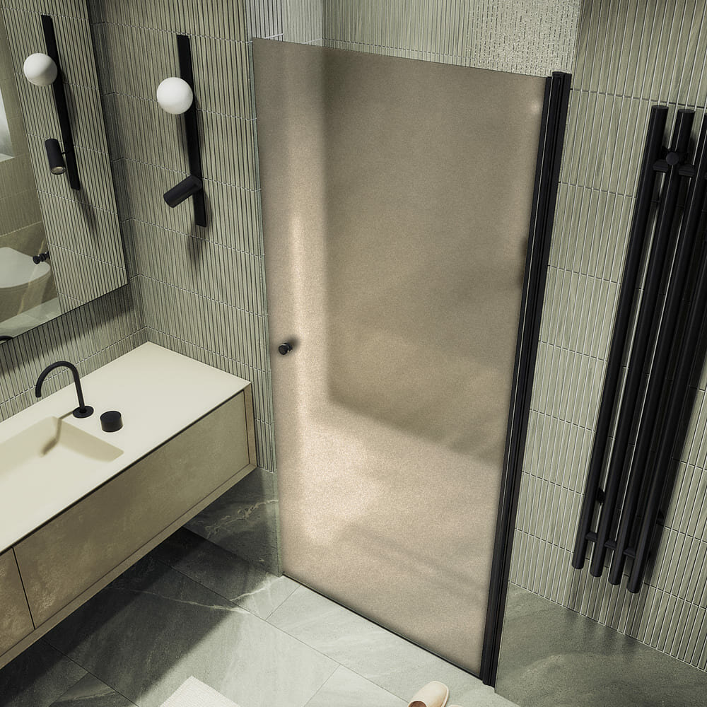 - Исполнение полотна двери: бронзовое матовое закаленное стекло, толщиной 6 мм.