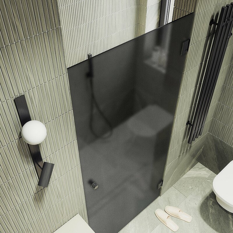 - Исполнение полотна двери: графитовое матовое закаленное стекло, толщиной 8 мм.