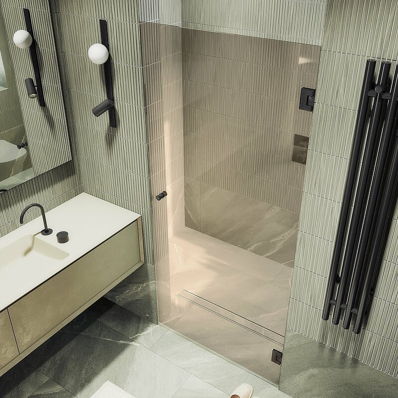 Стеклянная душевая дверь на петлях является стильным и функциональным элементом для ванной комнаты. Она обеспечивает мягкое и плавное открывание, что повышает комфорт использования. Изготовленная из прочного закаленного стекла дверь устойчива к царапинам и влаге, что гарантирует ее долговечность.