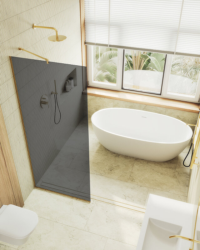 Стеклянная душевая перегородка в узком профиле - стильный и функциональный элемент, предназначенный для разделения пространства в ванной комнате. Перегородка изготовлена из закаленного стекла, обеспечивающего безопасность и долговечность. Профиль из анодированного алюминия добавляет конструкции прочности и устойчивости. Благодаря разнообразию размеров и дизайнов, стеклянная душевая перегородка идеально впишется в любой интерьер.