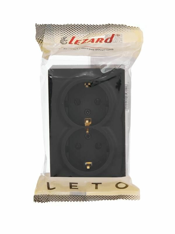 **Розетка двойная Lezard Leto** — это электроустановочное изделие, предназначенное для скрытого монтажа. Она имеет два гнезда, которые позволяют подключить два электроприбора одновременно. Розетка устанавливается в монтажную коробку, которая закрепляется в стене. Подключение проводов производится при помощи винтовых зажимов.